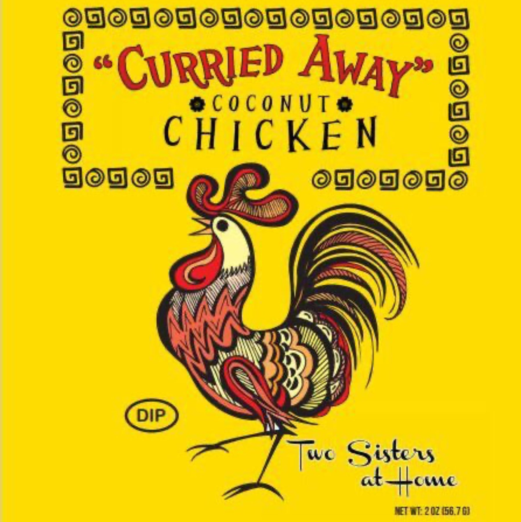 "Curried Away Coconut Chicken " Easy to prepare only three ingredients away from fanfare from your family and guests. Great as a dip, spread for sandwiches , salads , or use to create a soup. Contains: Curry, Red Bell Peppers, Chives, Lemon, Onion,Celery, Salt, Garlic, Coconut, Currants
