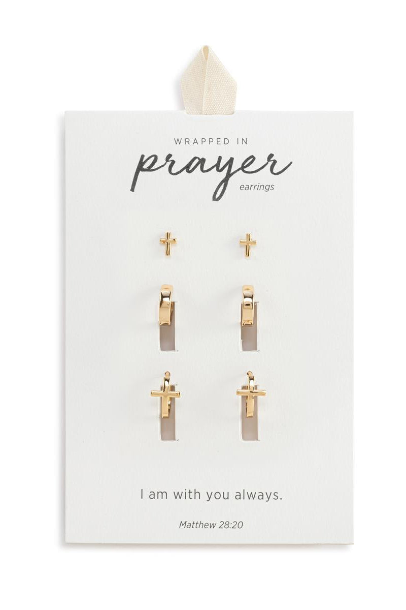 Dainty Cross Earrings Set of 3 - Gold celebrates everyday moments in wearable and shareable ways - reaffirming our beliefs and reminding us to always keep the faith in God's love. A spiritual, thoughtful and comforting message on the product or packaging keeps the spirit lifted.