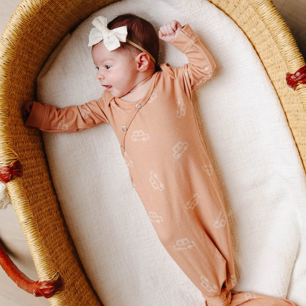 TRENDY, HIGH QUALITY DESIGNS – At Copper Pearl we pride ourselves on making high quality products that always look great on babies, moms, or in your nursery. Our knotted gowns are simple, modern, and sure to elevate any baby’s style.