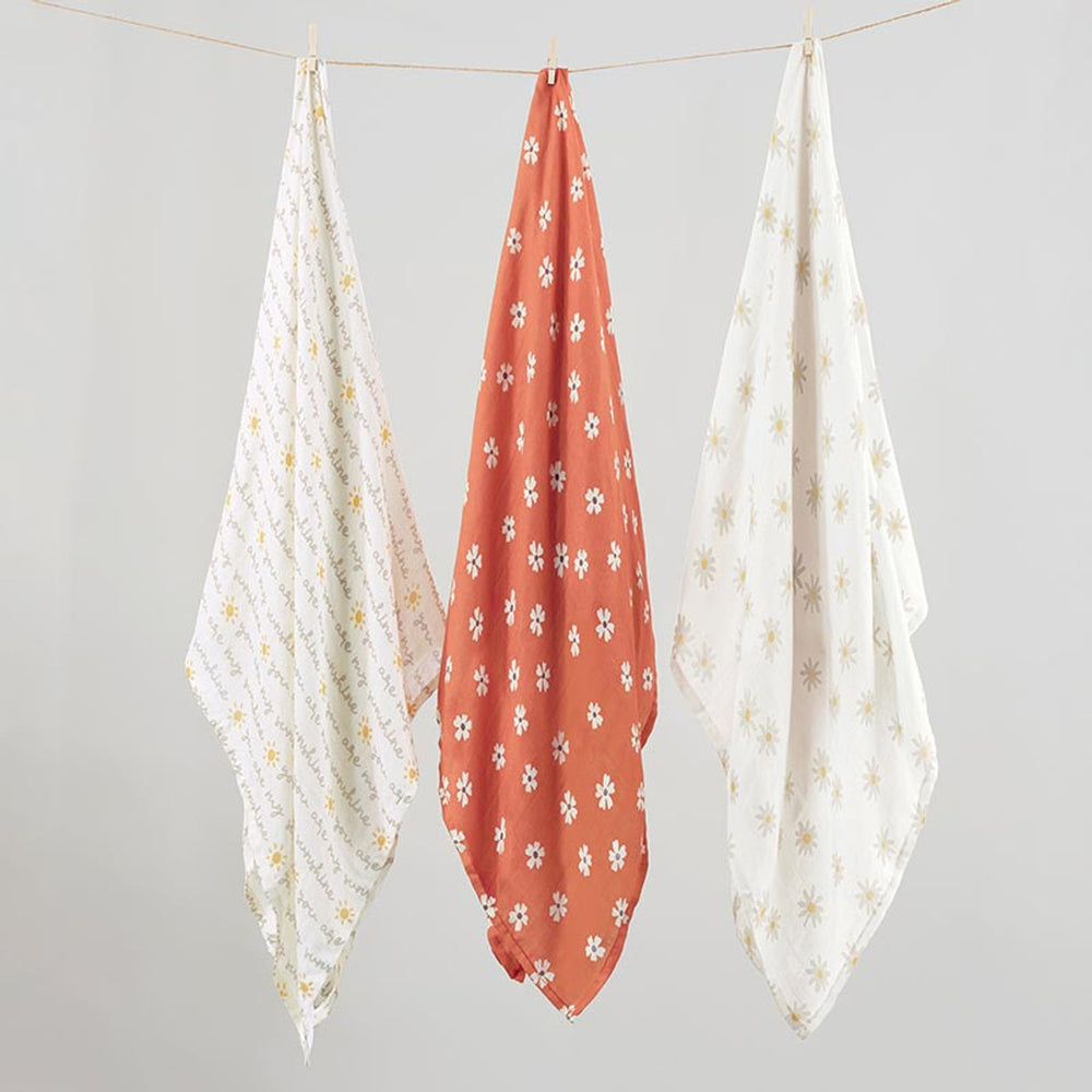 Wrap baby in warmth and cheer with this sweet swaddle blanket, radiating a sunny charm and featuring the beloved "My Little Sunshine" phrase.