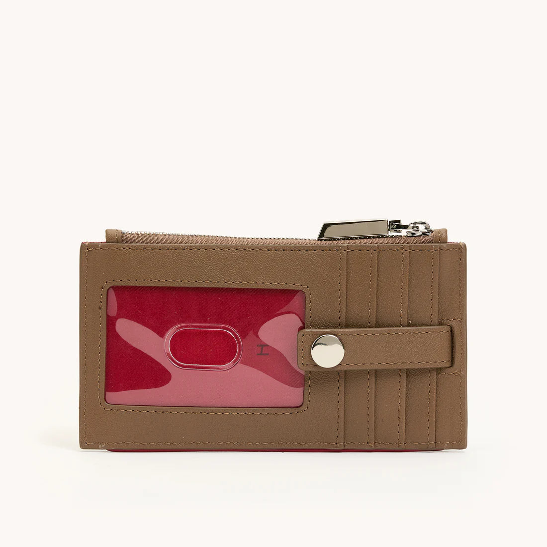 Your schedule is booked. That's why we've created one essential wallet that conquers every calendar entry. Stash credit and transit cards in up to 8 secure slots, and store meter change in one zippered pocket. Plus, enjoy a transparent ID slot when that cute bouncer asks for a peek at your license.