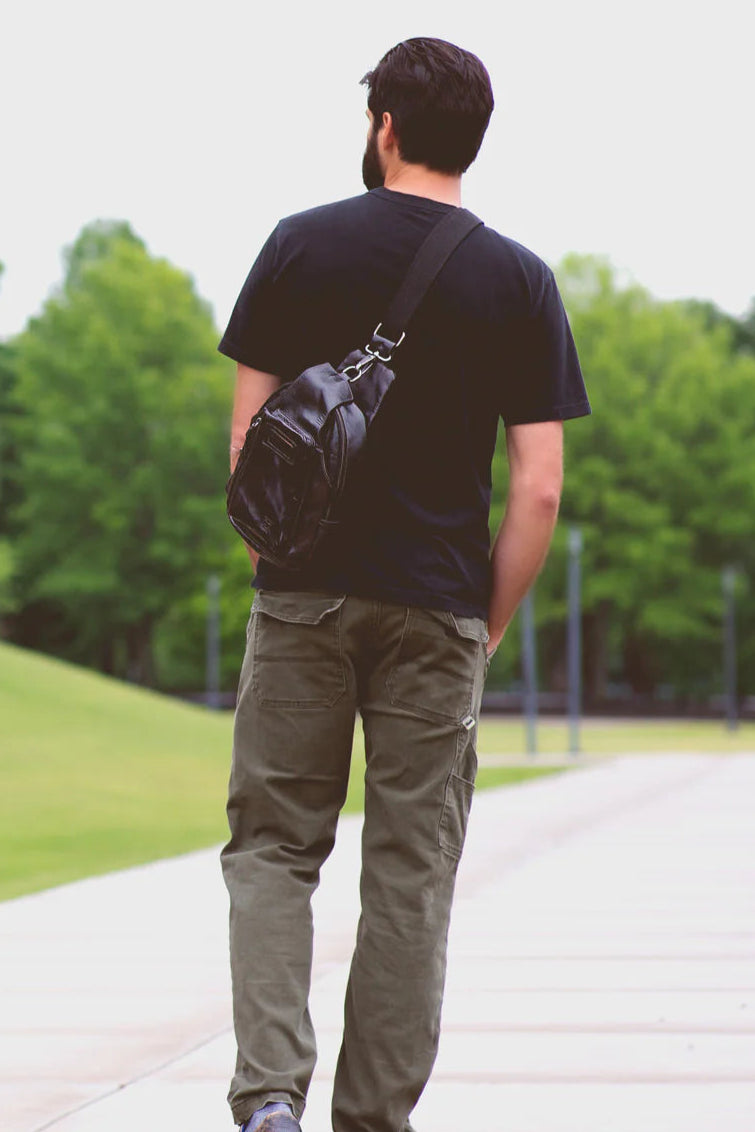 Beau is a functional leather sling backpack made with the softest leather and a durable strap. Suitable for him or her, Beau boasts an outer zipper pocket perfect to secure your phone on the trek through downtown or the hiking trail. Another zipper compartment fills the rest of the bag, ideal for your water bottle and whatever else gets you through the day. Beau is compact and built with function and hands-free activities in mind.