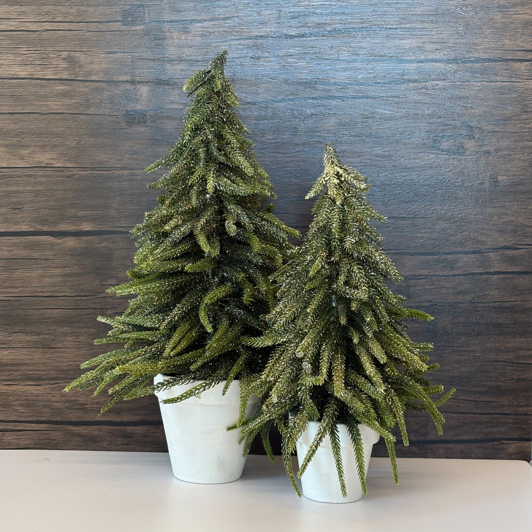 Bring a festive sparkle to your space with this Glittered Mini Norfolk Potted Pine. Its compact size and shimmering accents add a cozy holiday charm, making it perfect for tabletops, shelves, or as a thoughtful seasonal gift.