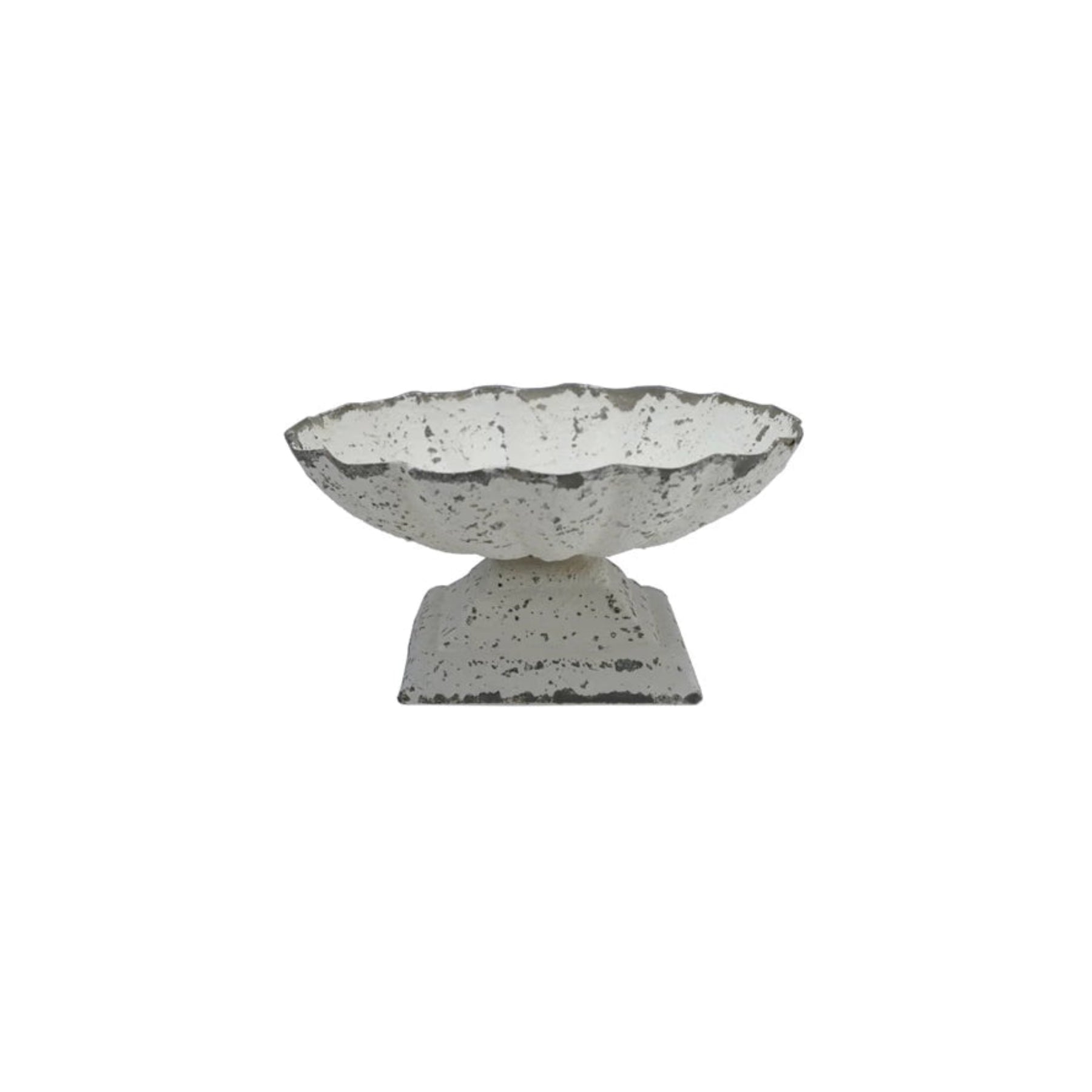 6-1/2" Round x 3"H Decorative Painted Cast Iron Scalloped Footed Dish, Distressed Finish, White