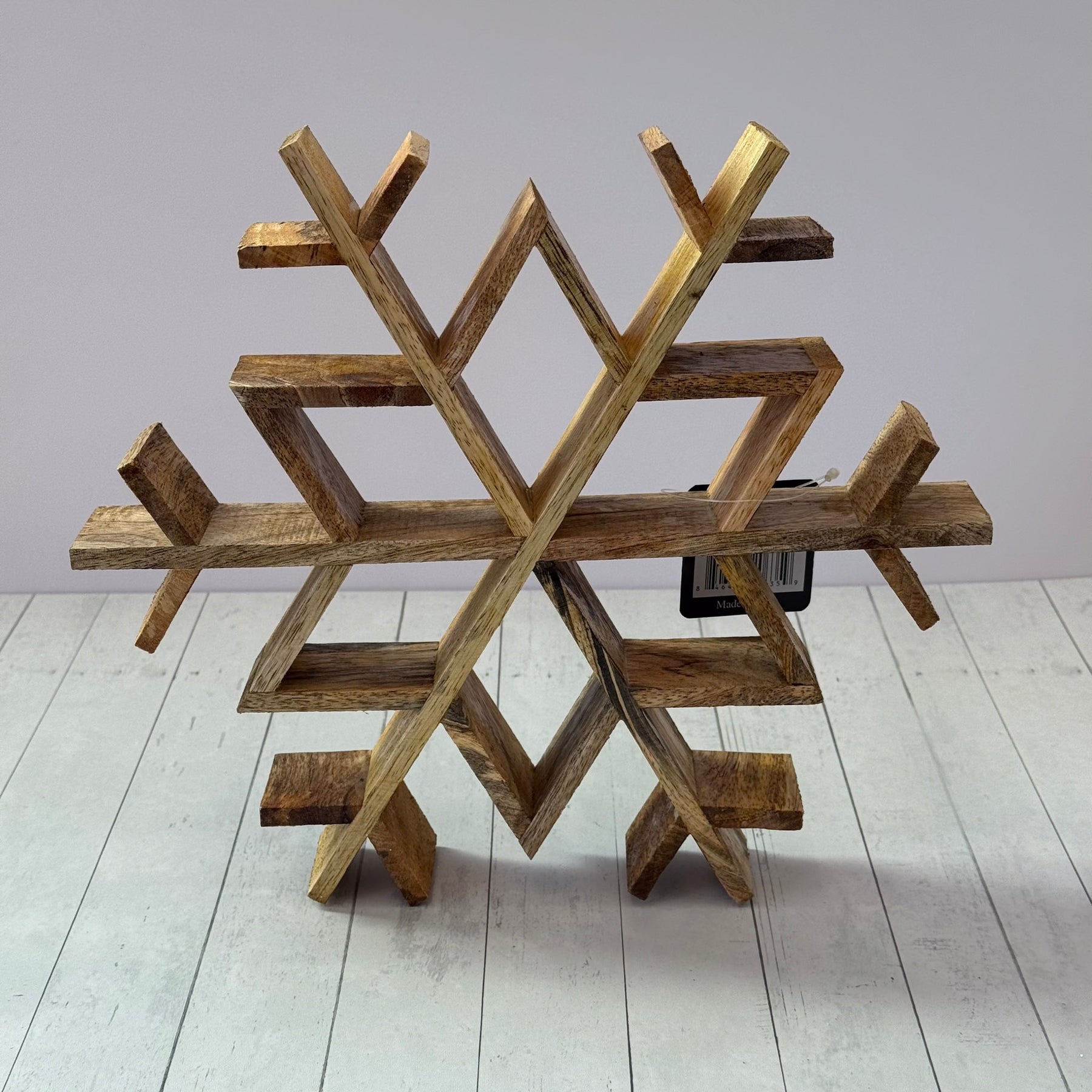 Crafted from natural wood, this cutout snowflake brings a cozy, rustic charm to your décor. Its intricate design adds a delicate winter touch, perfect for holiday decorating or year-round display. Embrace the warmth and simplicity of nature with this timeless piece.