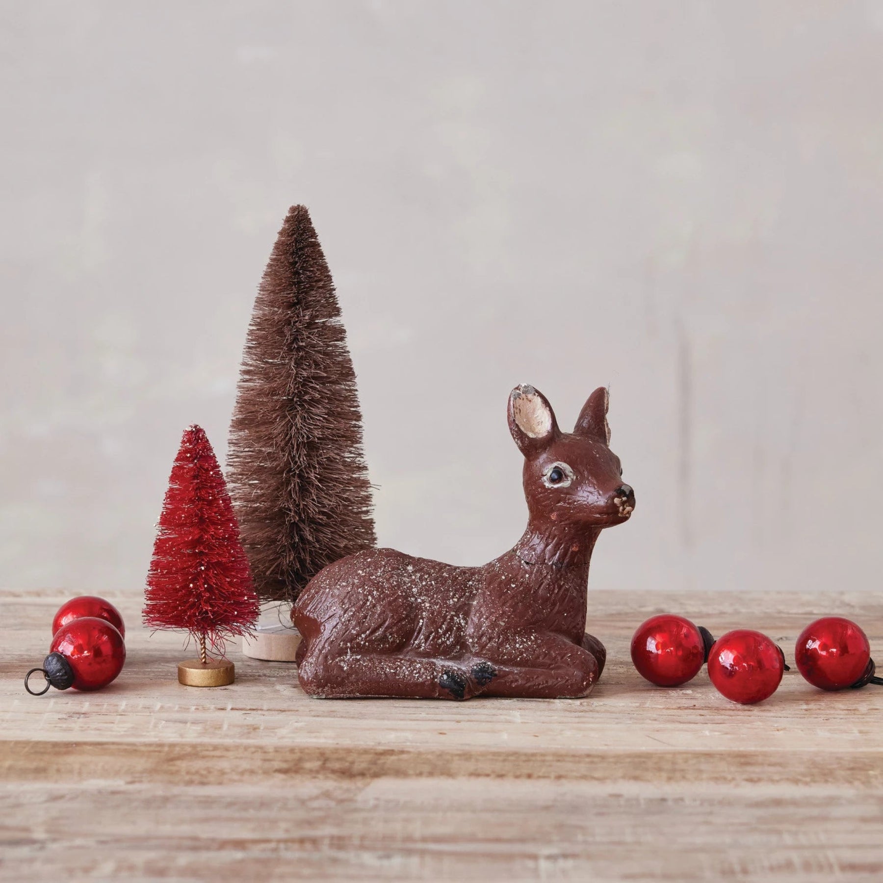 5-1/2"L x 2-1/4"W x 5-1/2"H Painted Cement Vintage Reproduction Lying Deer, Distressed Finish, Brown
