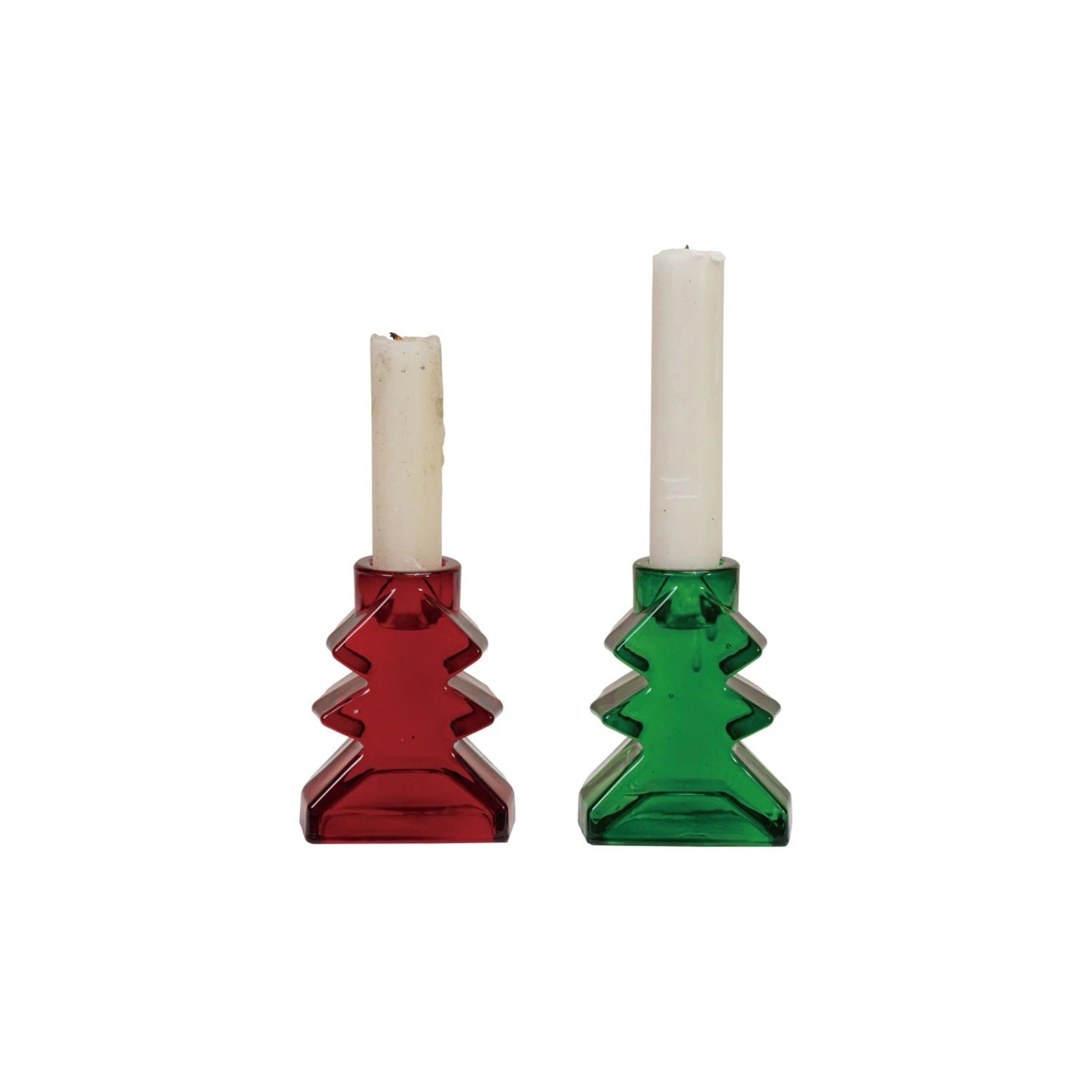 2-1/2"L x 1-1/2"W x 3-1/4"H Glass Tree Shaped Taper Holder, 2 Colors