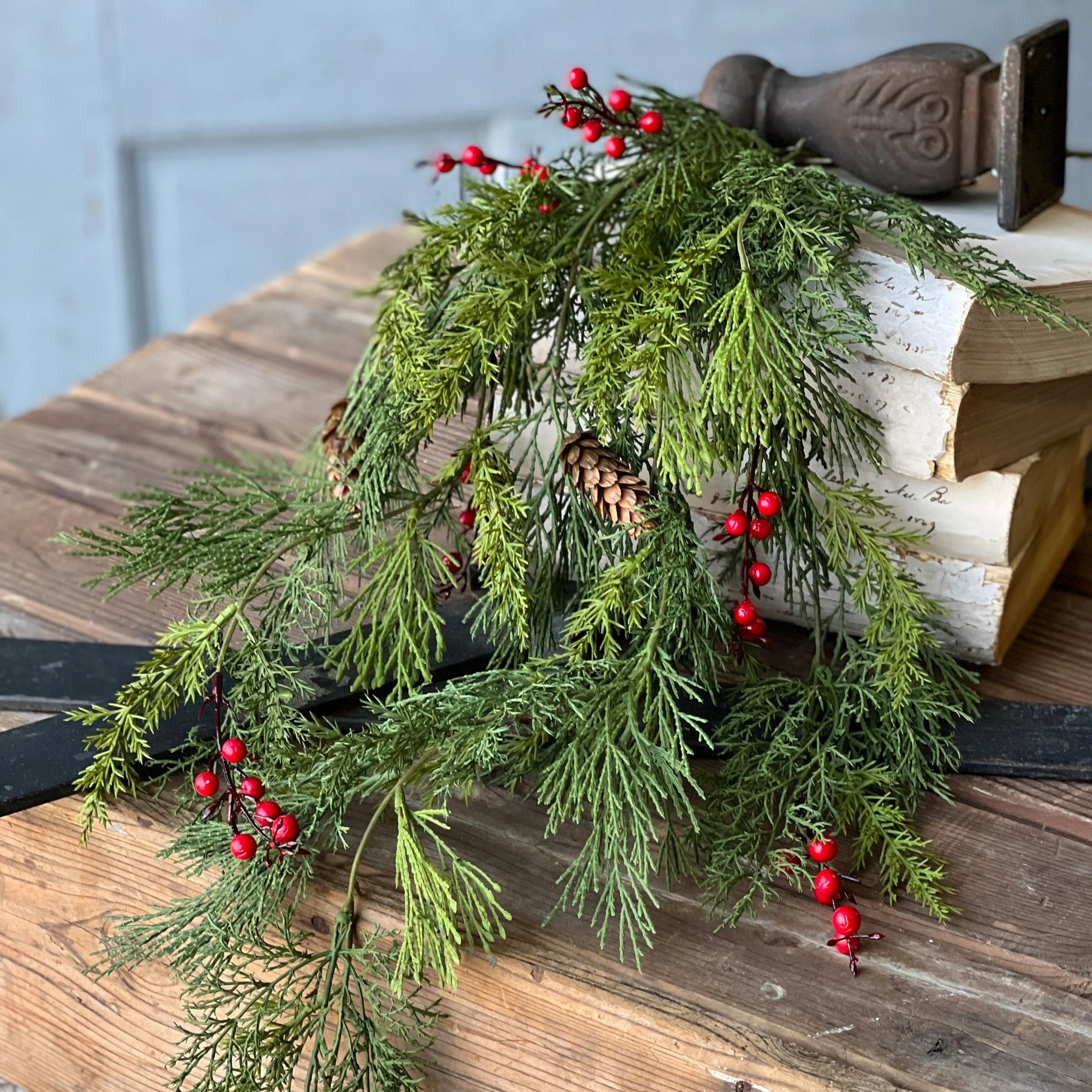 Invite the cozy spirit of the season into your home with the Cedar Cone & Berries Hanging Foliage. Its natural cedar cones and vibrant berries bring a rustic, warm charm that complements any holiday décor. Perfect for doorways, mantels, or windows, this hanging accent adds a welcoming touch that celebrates the beauty of winter.