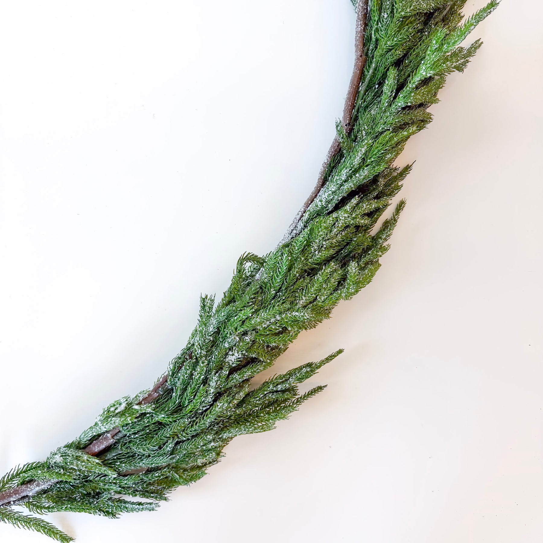 Bring the serene beauty of a winter garden indoors with the Iced Garden Norfolk Pine Garland. This lush garland features frosted Norfolk pine branches that add a delicate, icy touch to your décor. Perfect for enhancing holiday settings or cozy gatherings, it brings a natural, festive warmth that complements any space.