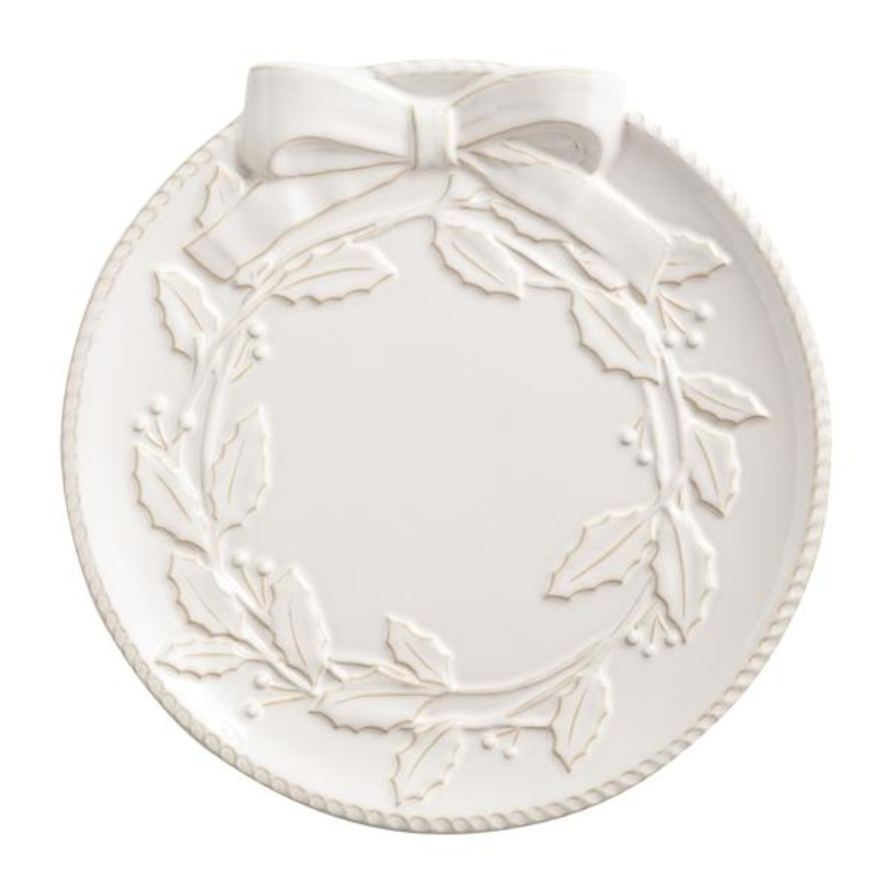 White Wreath Platter 2-piece set offers a sophisticated touch to your dining experience. Crafted from high-quality milk glazed stoneware, this platter showcases exquisite textured relief and in-mold details, making it a stunning centerpiece for any table setting.