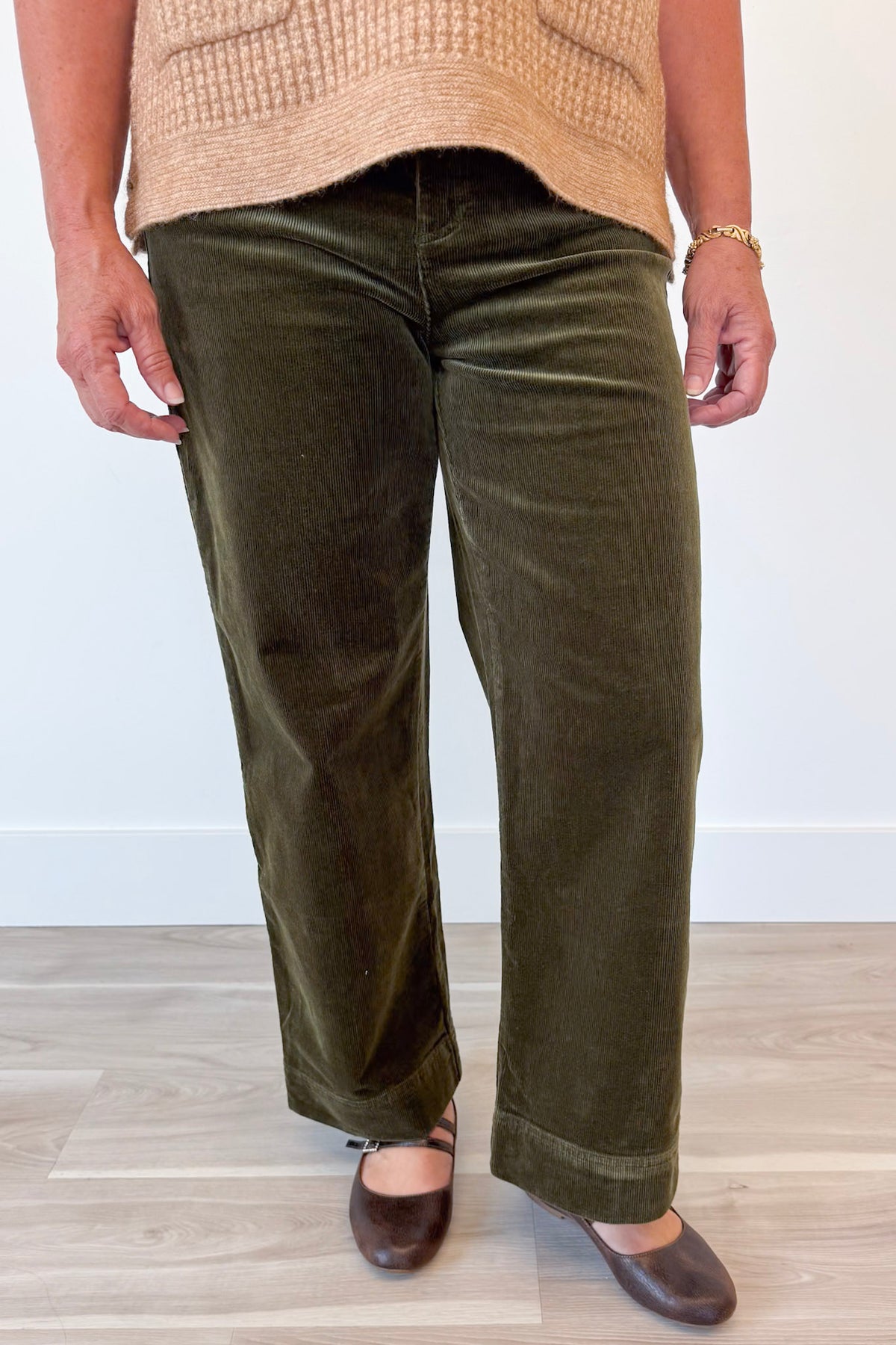 • Wide ankle-length leg