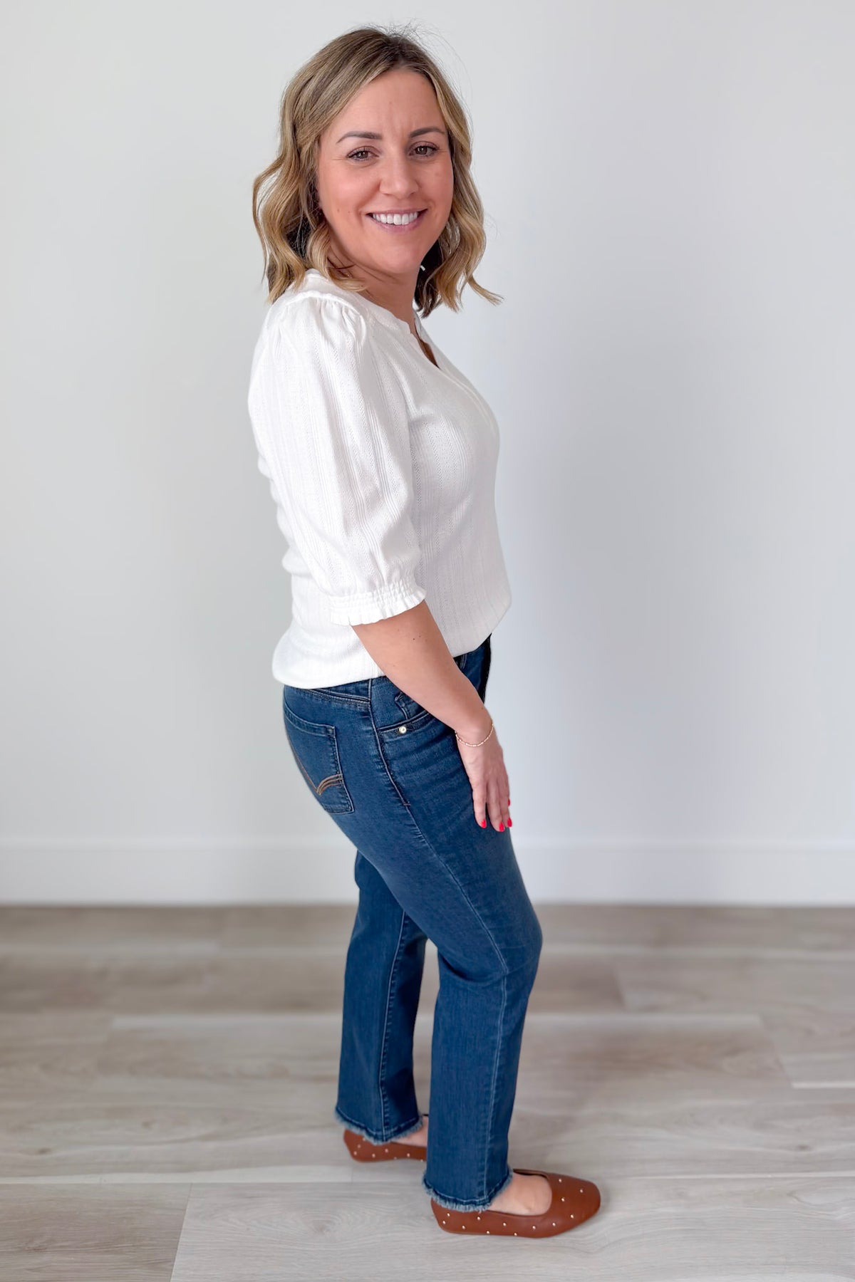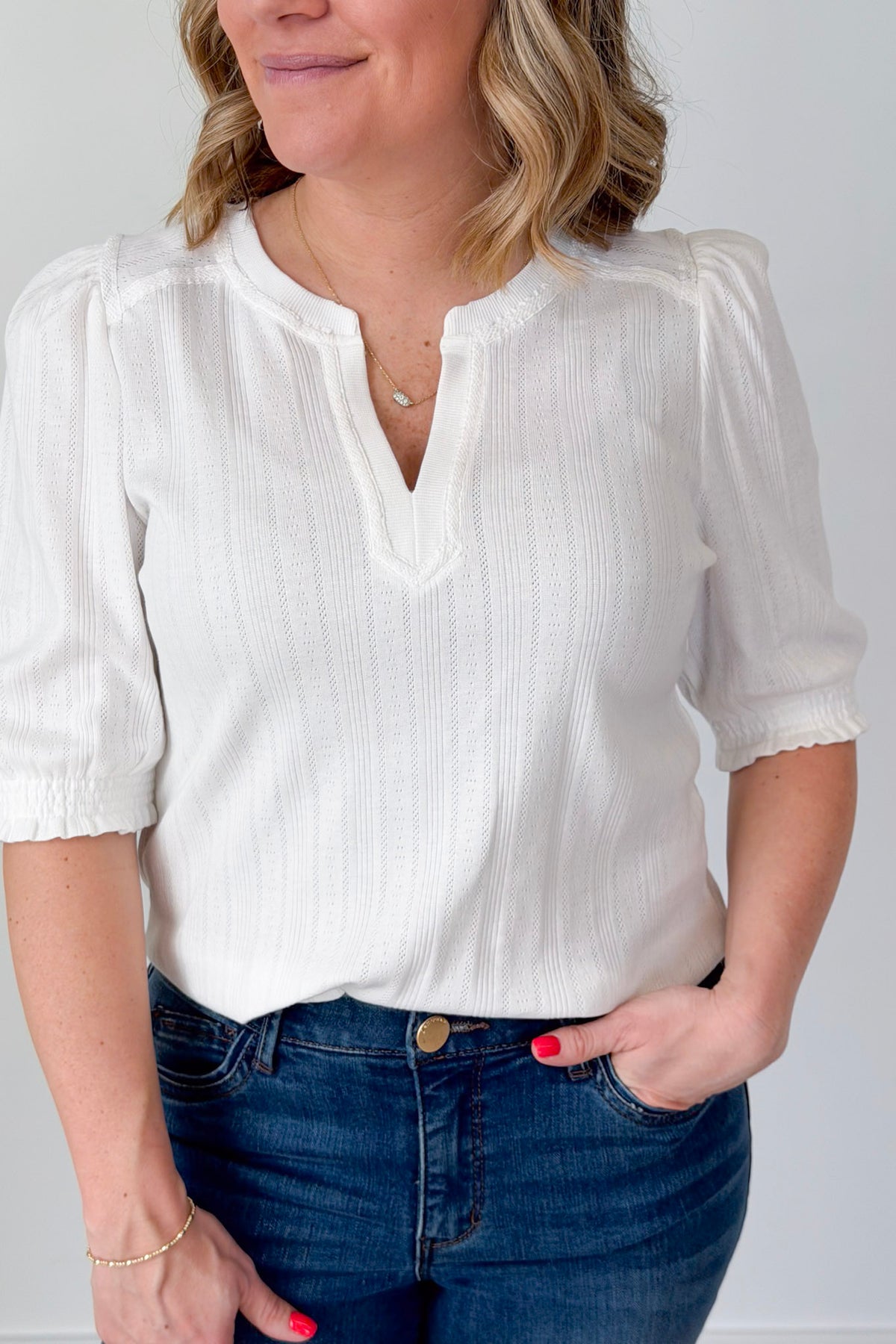 • Elbow puff cinched band sleeve