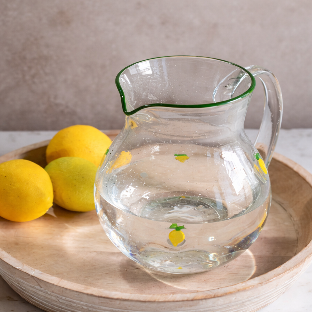 Lemon Print Bubble Glass Pitcher