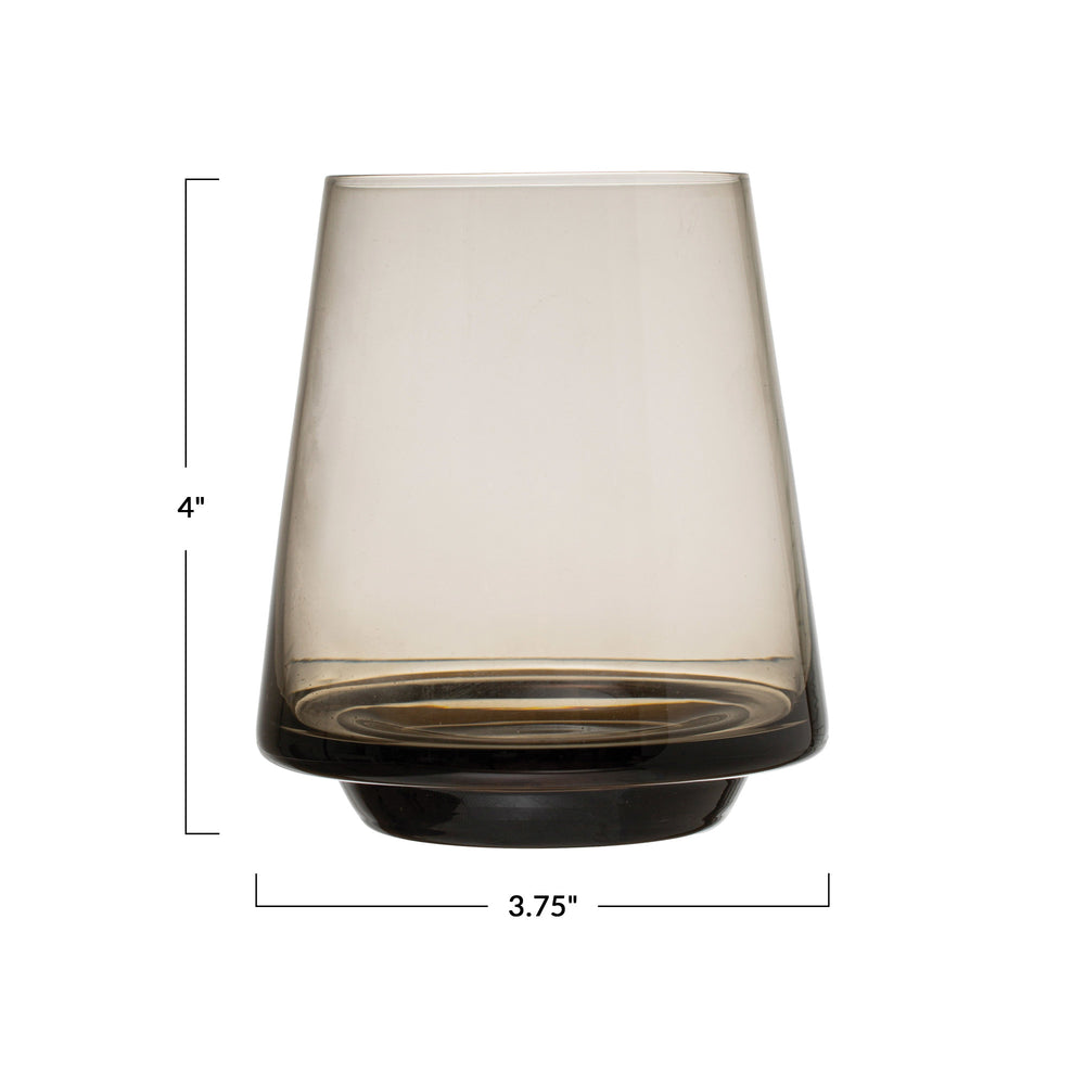 This large capacity 12 oz. stemless modern wine glass is perfect for serving red or white wine. Its sturdy 100% glass construction is comfortable and natural to hold and has a bit of weight at the base. Finish of glass is a clear, smoky gray that adds a touch of modern to an otherwise traditional classic design. Made from 100% premium lead-free glass. Dishwasher safe for everyday use.