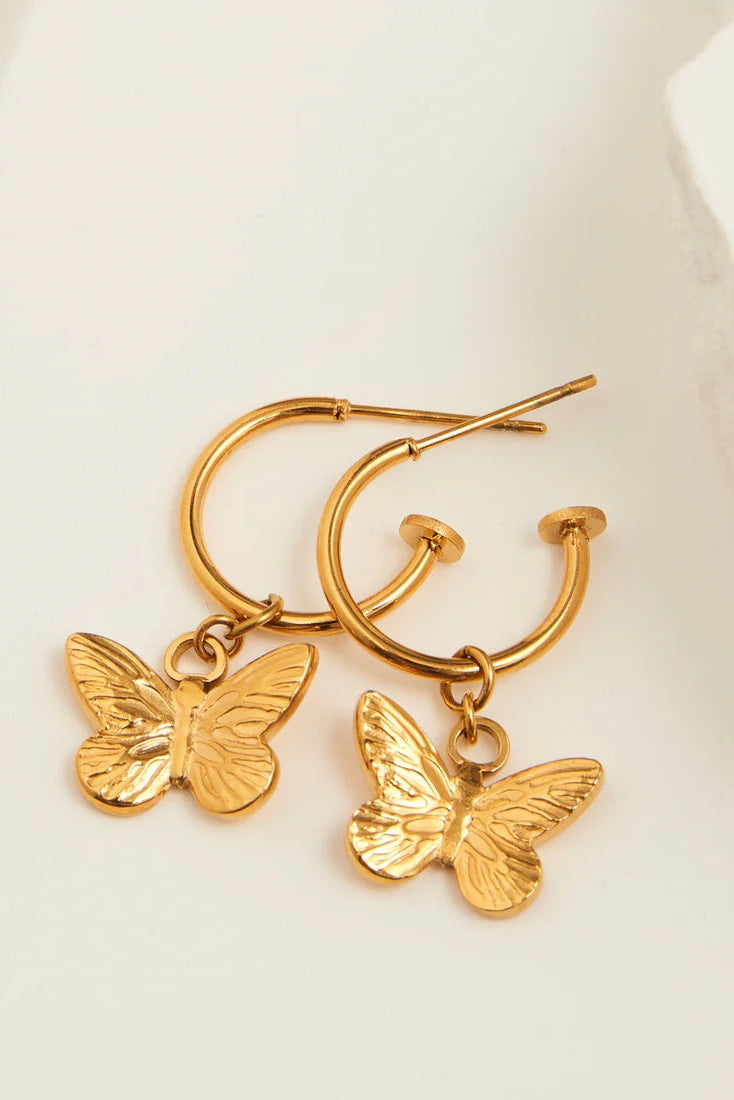 Narelle Waterproof Butterfly Charm Hoop Earrings