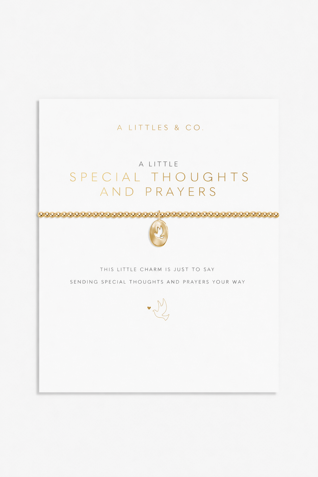 Celebrate all of life's treasured moments with those that mean the most with our ever-growing collection of A Littles. Featuring our signature beaded design that ensures a comfortable fit on any wrist and crowned with a lovely gold-tone plated hammered charm, complete with a dove to represent peace, the A Little 'Special Thoughts And Prayers' Bracelet In Gold-Tone Plating comes carefully wrapped around a sentiment-stamped presentation card, ready to spread joy and make the sweetest addition to their stack.