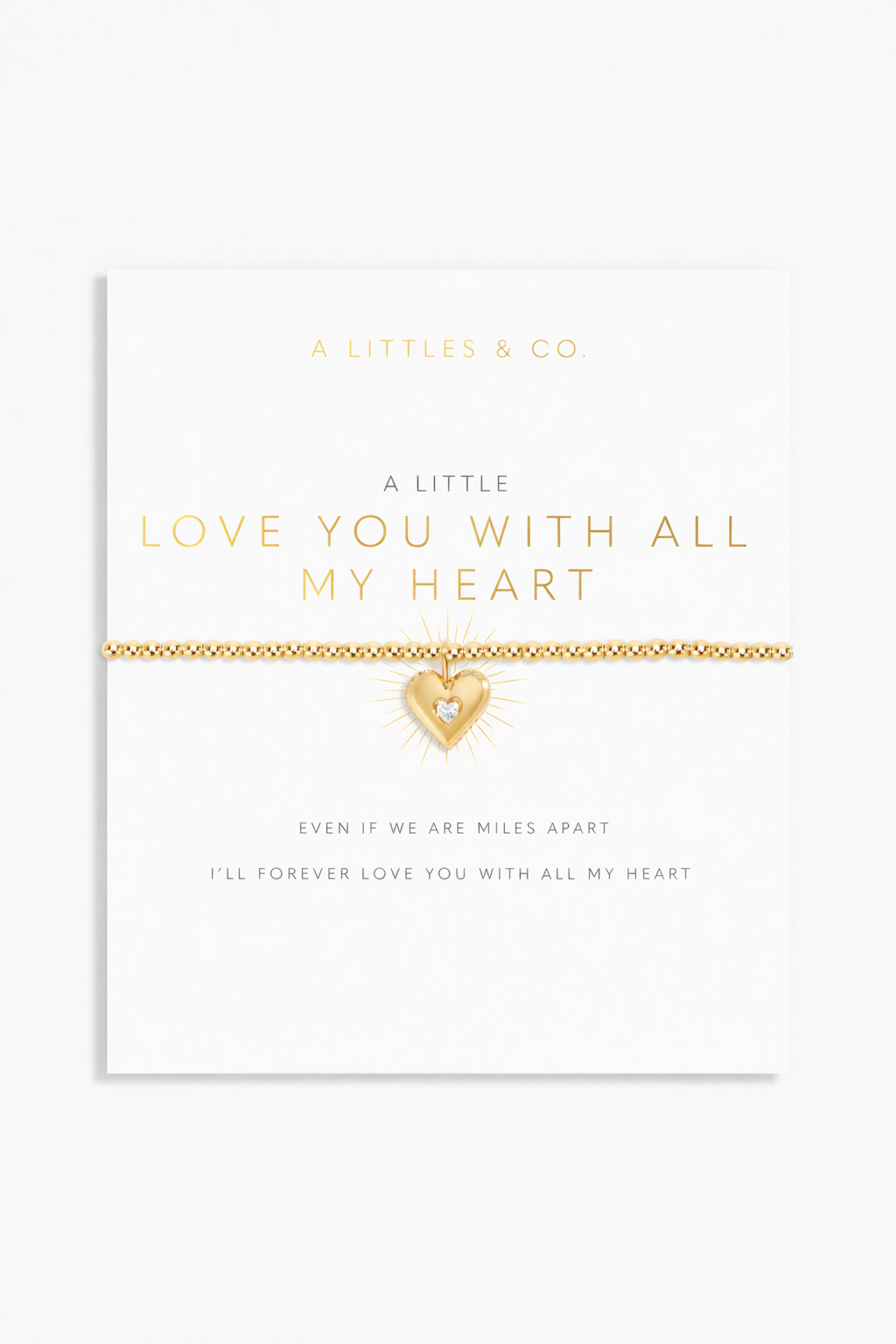 Celebrate all of life's treasured moments with those that mean the most with our ever-growing collection of A Littles. Featuring our signature beaded design that ensures a comfortable fit on any wrist and crowned with a lovely gold-tone plated heart charm, complete with a cubic zirconia gemstone, as a sign of your love, the A Little 'Love You With All My Heart' Bracelet In Gold-Tone Plating comes carefully wrapped around a sentiment-stamped presentation card, ready to spread joy and make the sweetest addition to their stack.