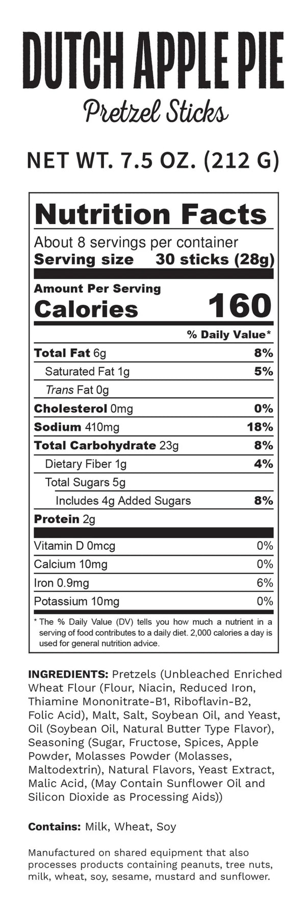 Move over Pumpkin Spice everything, there is a new flavor in town and it is making a dramatic entrance. Introducing our limited, seasonal edition Dutch Apple Pie Pretzels. Crisp to it’s core and channeling the streusel topping of real Dutch Apple Pie. Taste the collision of real apple, caramel and cinnamon.