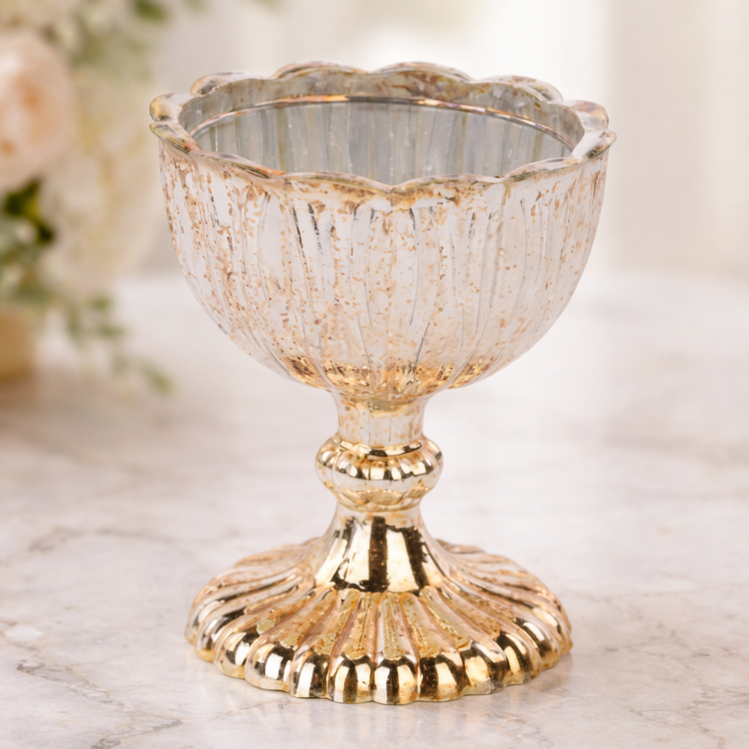Etched Mercury Glass Footed Compote
