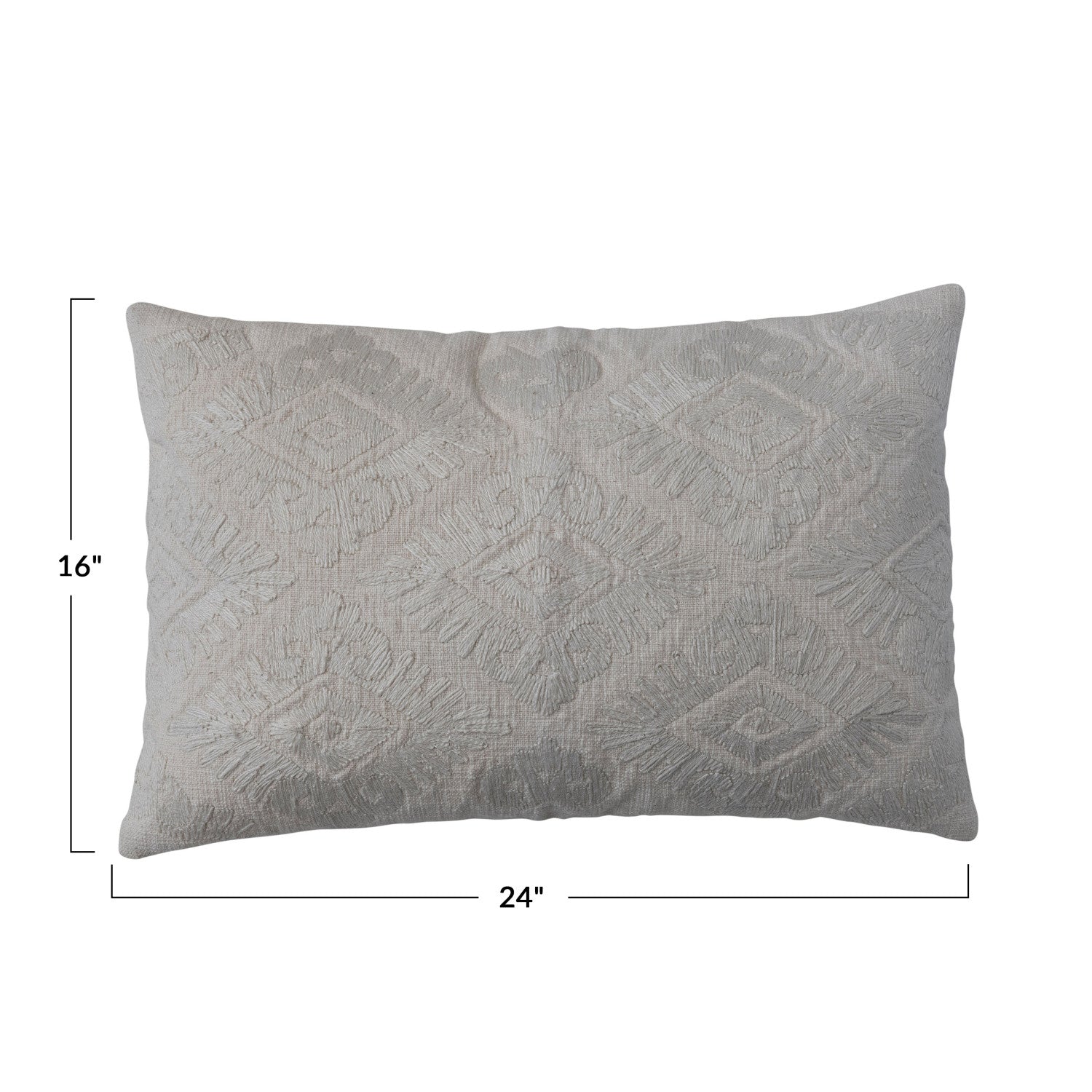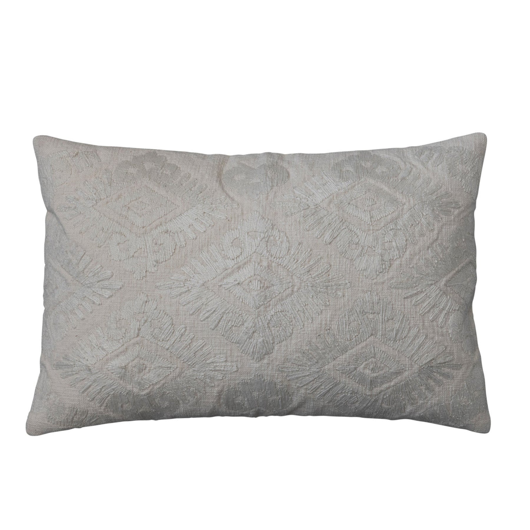 Bring soft, elevated texture to your space with this neutral lumbar pillow. The subtle embroidered pattern adds depth without overpowering your decor, making it an easy layer for beds, sofas, or accent chairs. A perfect finishing touch for a warm, cozy, lived-in look.