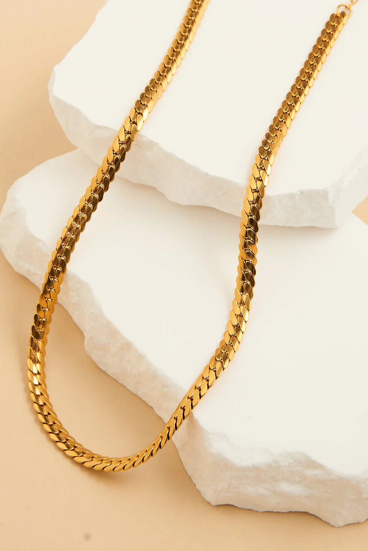 Elevate your layering game with the Narelle Waterproof Herringbone Chain Necklace—a bold, statement-worthy piece. Whether layered with dainty chains or worn solo as a standout accessory, this necklace is a must-have staple that will keep its shine season after season.