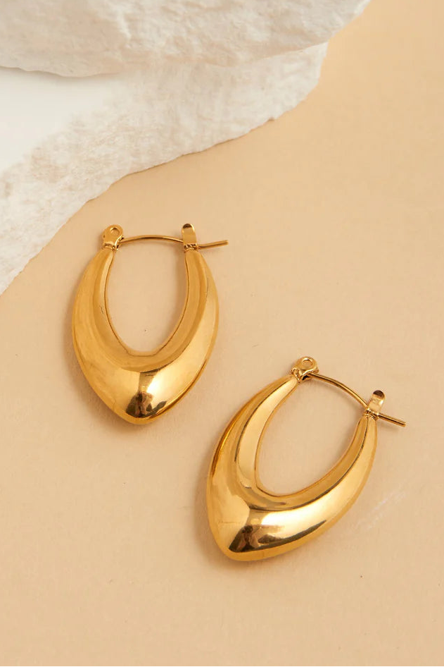 Elevate your jewelry collection with the Narelle Waterproof Oval Pointed Hoop Earrings, available in both gold and silver finishes. Crafted from durable stainless steel, these hoops are designed to resist tarnishing and stay beautiful even when exposed to water, making them perfect for everyday wear