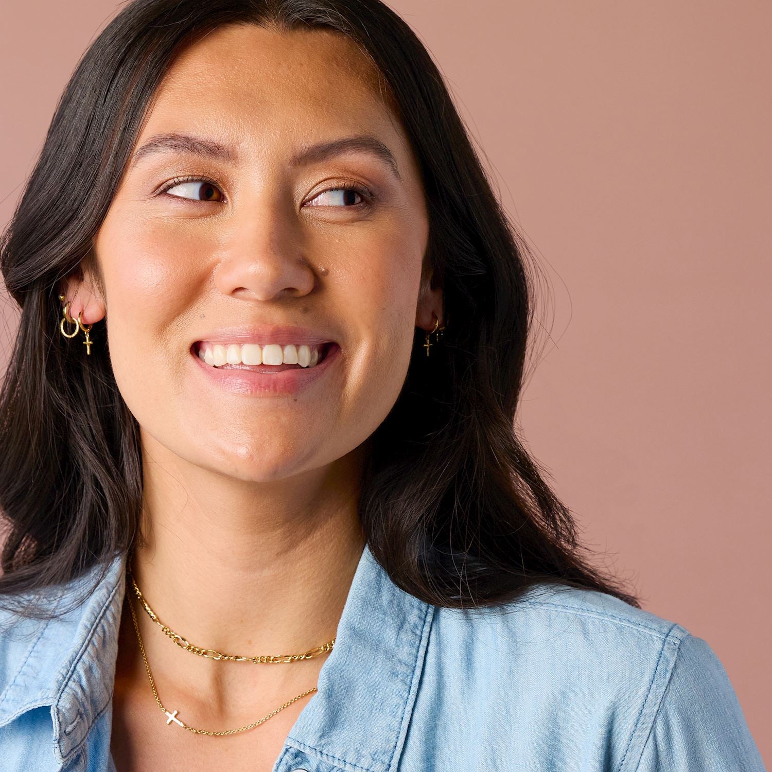 For morning, noon and nighttime too, Briar + Co.'s Gold Cross Charm Necklace is created to shine everywhere today takes you. Intentionally crafted with tarnish resistant 14k gold plating, each good-as-the-day-you-got-it piece offers a worry-free statement that makes every moment extra sweet for you and the women in your life. Whether dressing up for a night on the town, heading to the beach, going for a workout or chasing little ones around, these timeless styles celebrate your story.