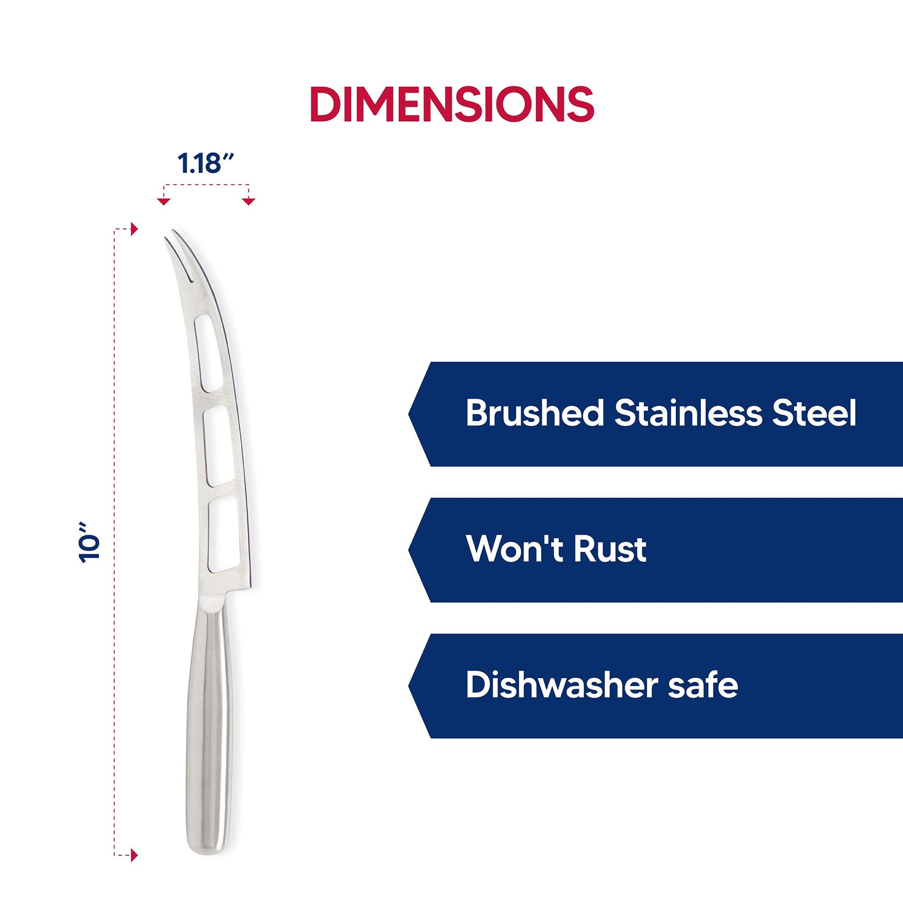 • Forked tip serves sliced cheese; ideal for brie, bleu, goat cheese, and fresh mozzarella cheese; hollow handle is lightweight and comfortable