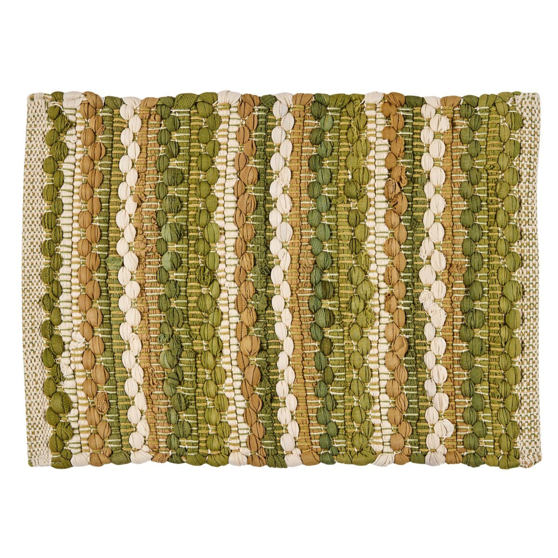 Handwoven chindi placemat featuring a beautiful blossom grove design. This versatile piece adds warmth and texture to any table setting while protecting your surfaces. Perfect for everyday dining or special occasions.