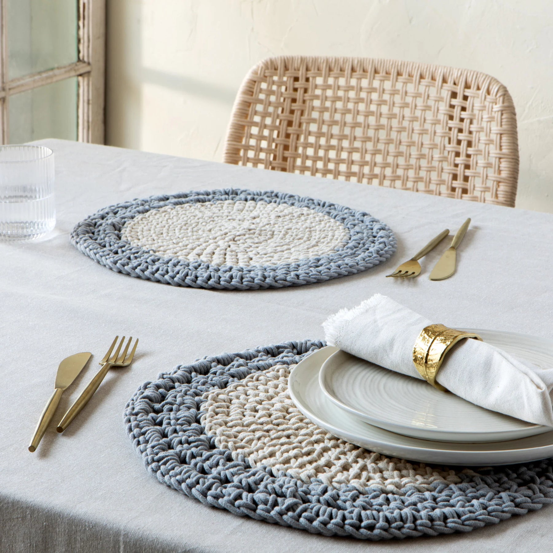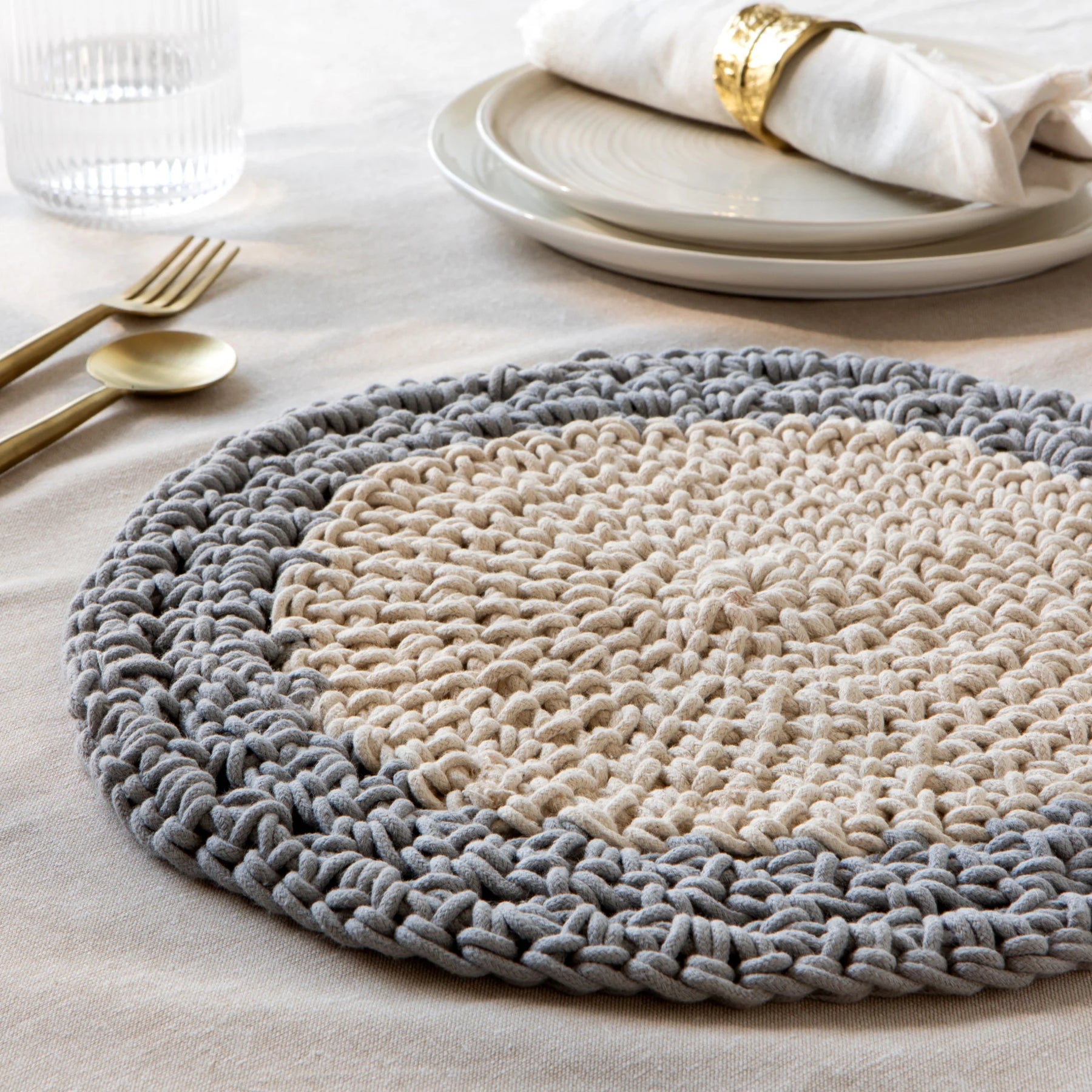 Framed with a halo of color the woven Shadow Aura placemat brings a warm, natural element to any table. This handmade placemat offers slight variations in color, texture and finish making each unique and perfectly imperfect.