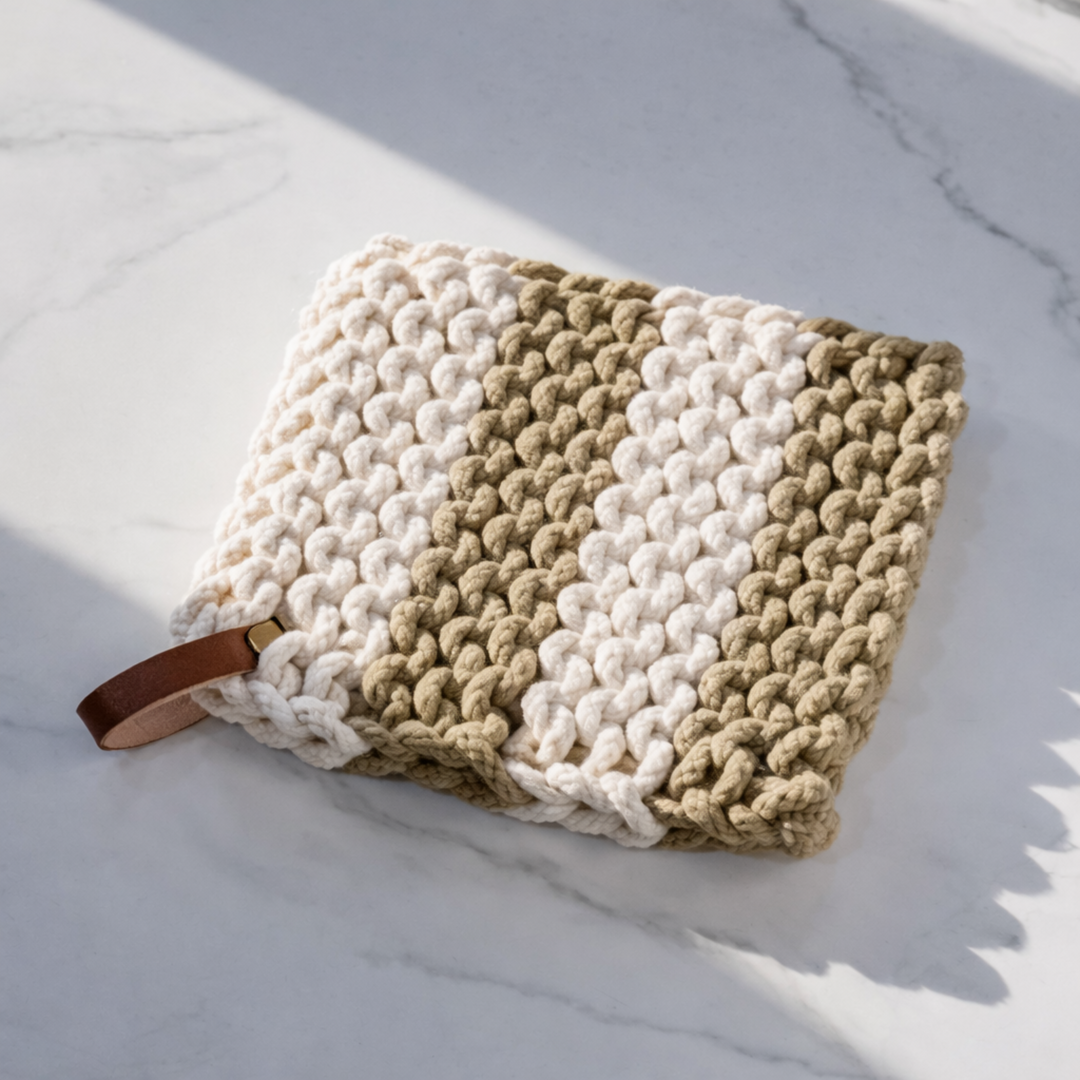 Leather Strap Knit Potholder