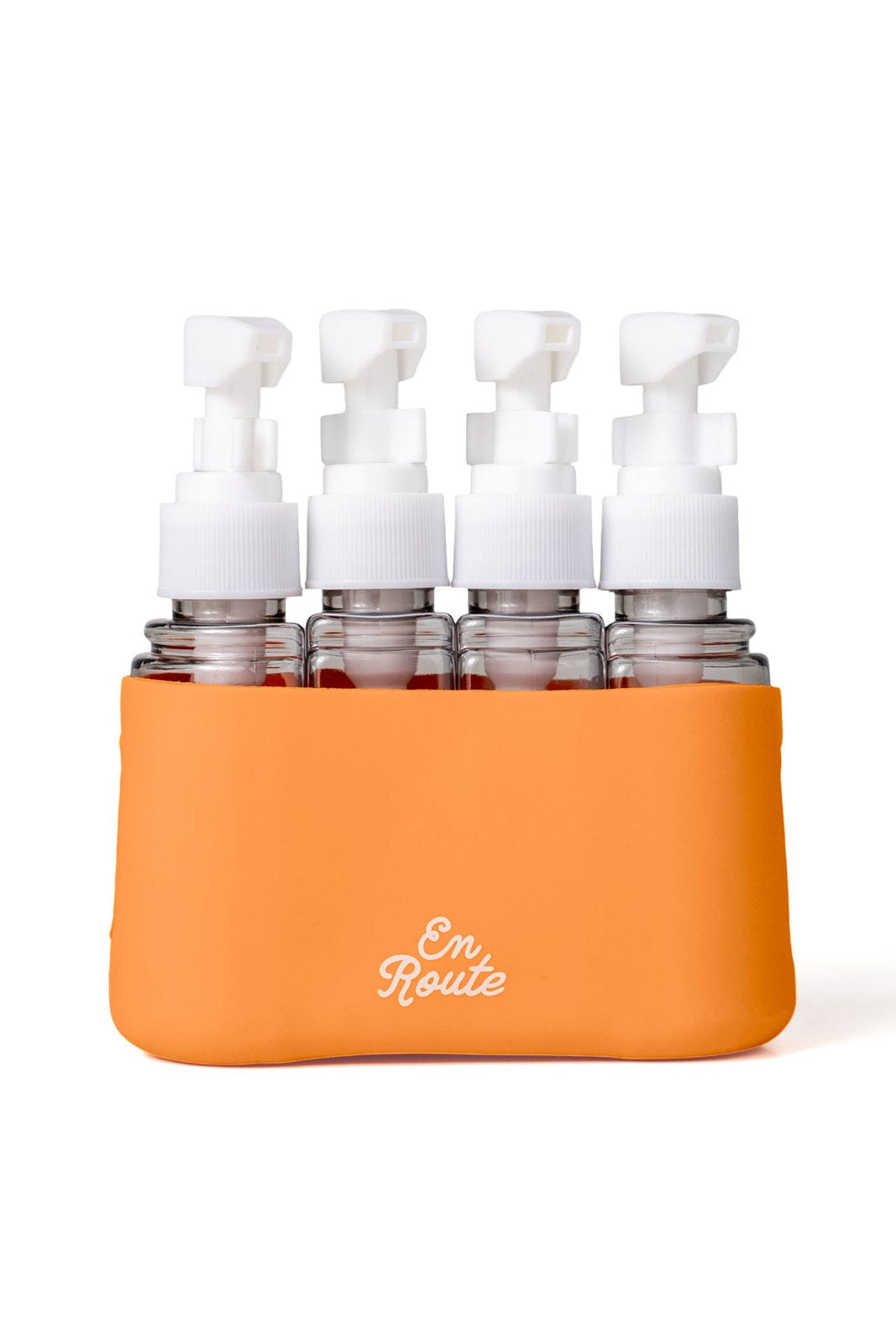 Pack your daily essentials for any destination! This TSA-friendly set of four pump bottles comes in a convenient silicone sleeve and hard-top case to help keep luggage neat and mess-free. Great for travel and gift sections!