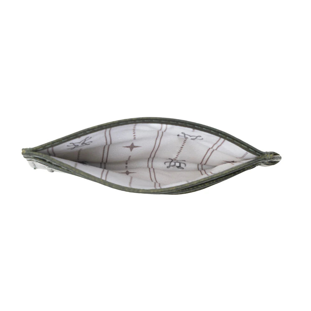 Bring elegance to your essentials with this Myra Zidana western card holder. The vegetable-tanned leather exterior in a classic olive hue exudes sophistication, while its sleek and lightweight design maintains everyday practicality. Compact enough to slip into any purse or pocket, it comes with several functional pockets for cards and bills. All in all, this limited-edition Zidana western credit card holder celebrates craftsmanship, durability, and subtle rustic charm that only gets better with time.