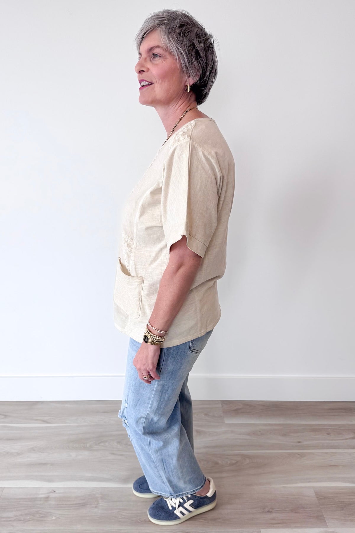 • Relaxed short sleeves