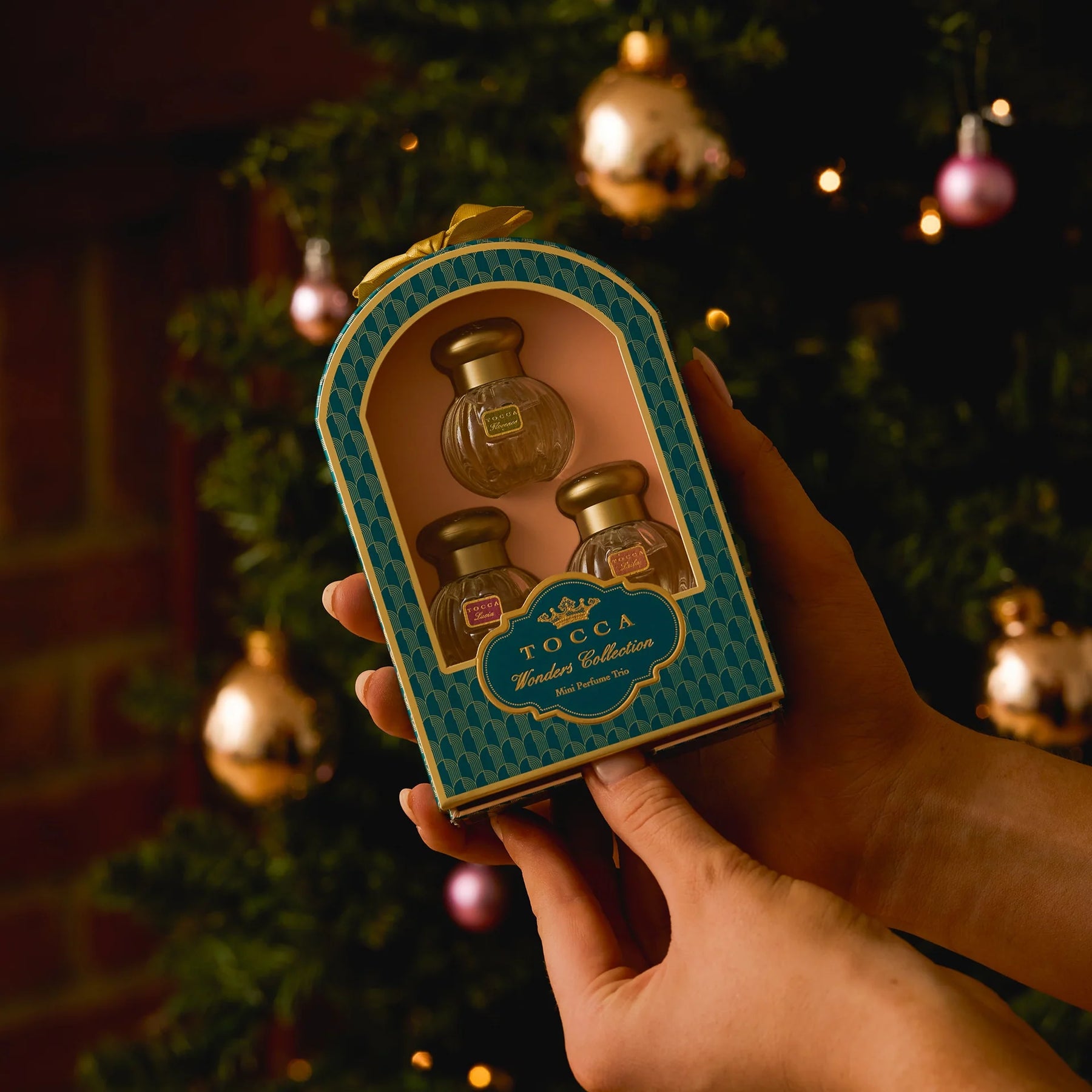 A delightful trio of beloved TOCCA Eau de Parfums, each with her own unique character. Housed in a beautiful windowed ornament box, this duo is perfect to be hung on a tree or stuffed in a stocking.