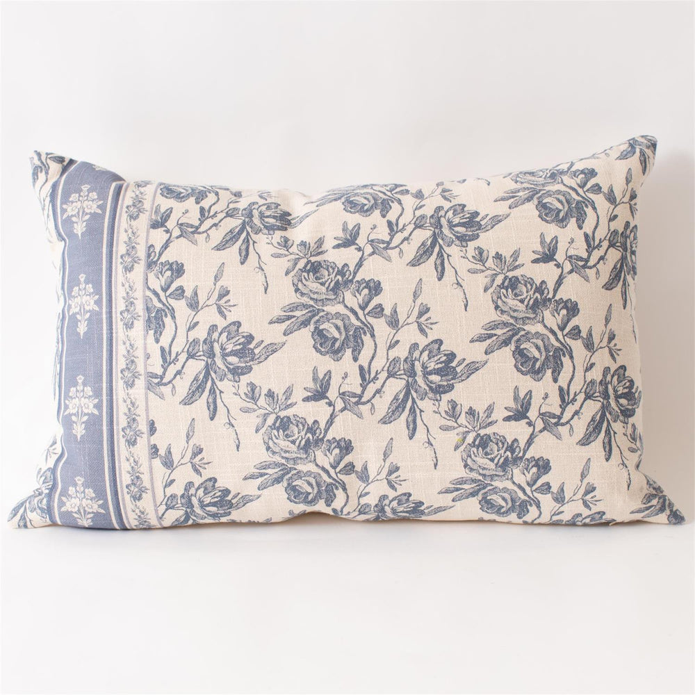French Blue Floral Lumbar Pillow