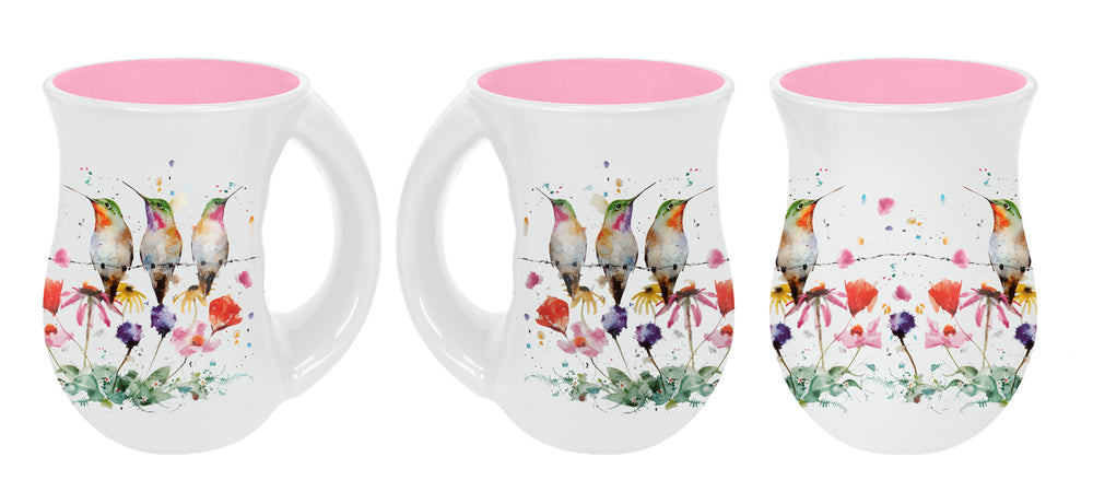 Delicate, colorful, and full of life, this cozy mug features watercolor-style hummingbirds perched among blooming flowers. The softly curved shape feels comfortable in hand, while the cheerful artwork adds a bright, uplifting touch to your daily coffee or tea ritual.