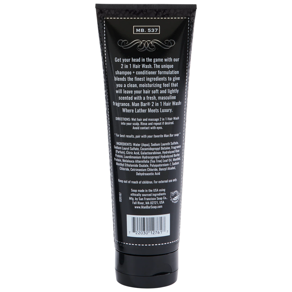 Get your head in the game with our 2-in-1 Hair Wash. The unique shampoo + conditioner formulation blends the finest ingredients to give you a clean, moisturizing feel that will leave your hair soft and lightly scented with a fresh, masculine fragrance. Man Bar 2-in-1 Hair Wash – Where Lather Meets Luxury.