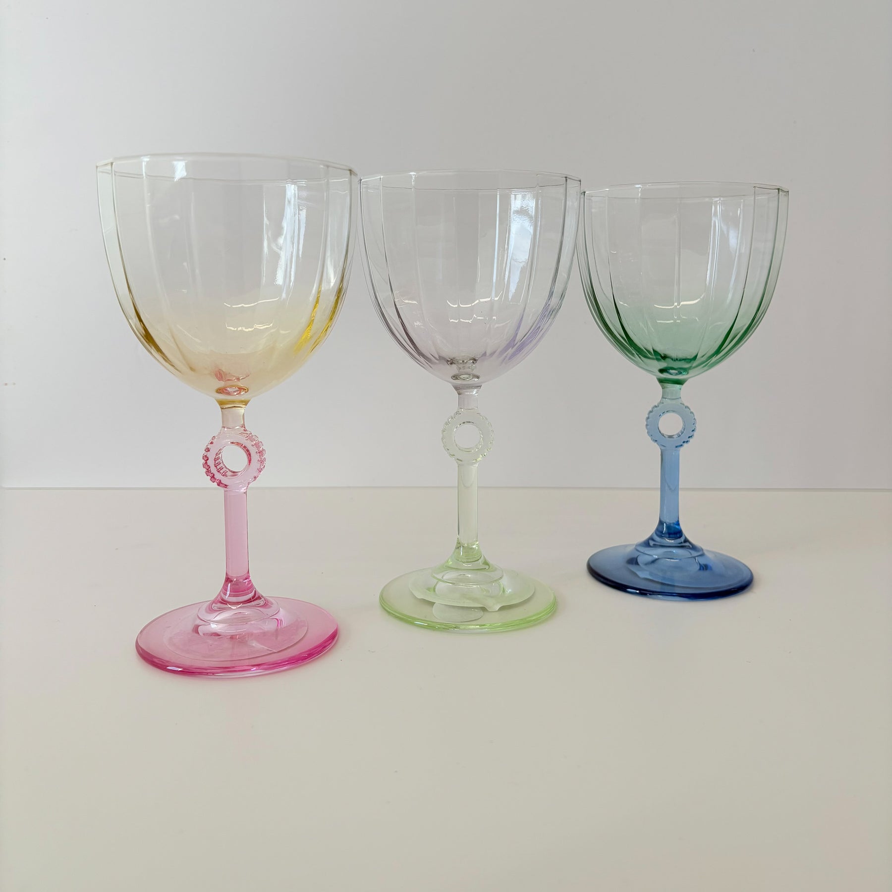 Add a little extra charm to your table with these playful vintage inspired wine glasses. Each one features a beautifully tinted bowl and a fun loop detail on the stem for the perfect mix of classic and quirky. Perfect for everyday sipping or hosting your next get-together!