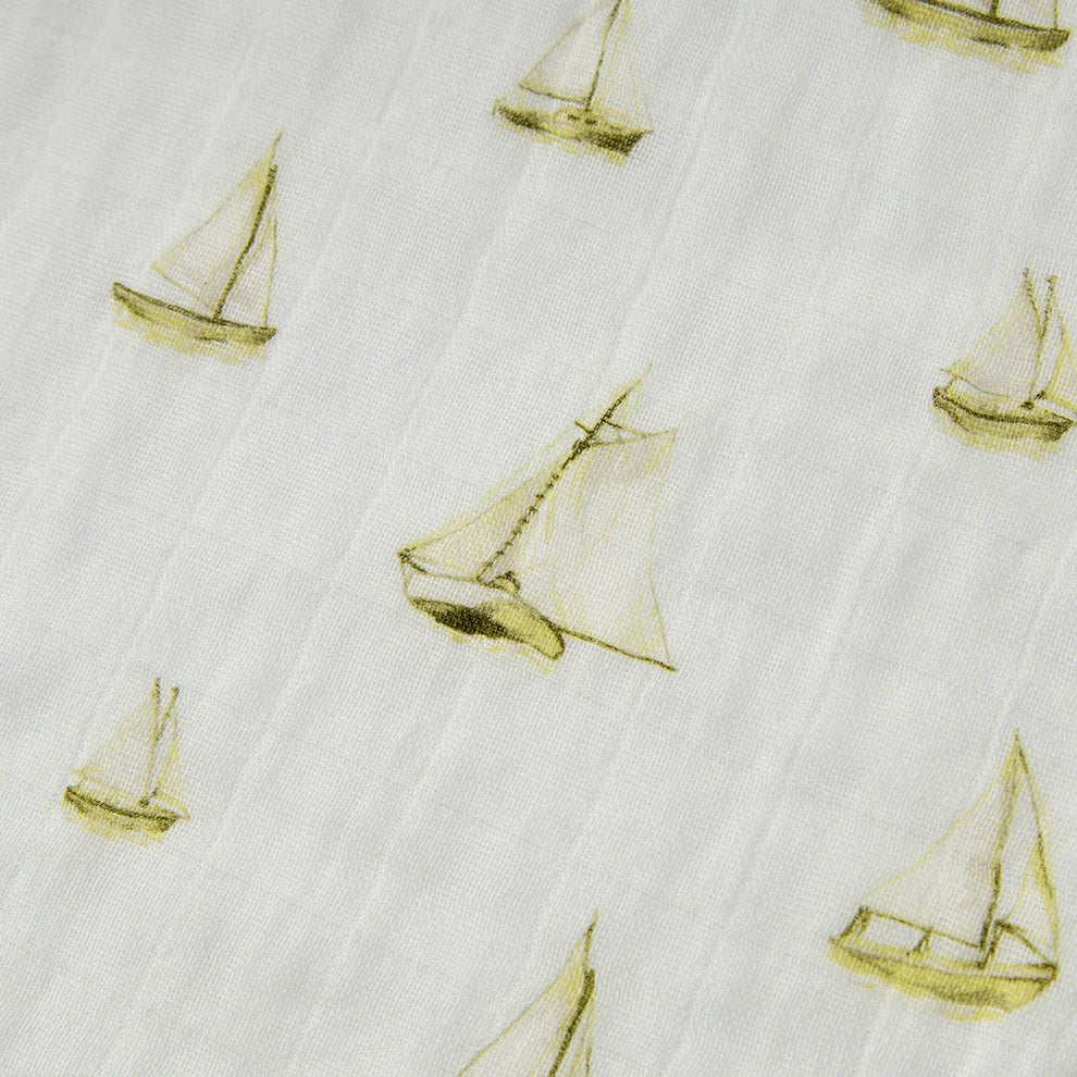 Crafted from pure organic cotton that's gentle on delicate skin and easy to wear. Gentle against skin and ready for everyday clean-ups. Inspired by sunny seaside adventures, our Sailboat Melody print adds an ocean-loving touch.