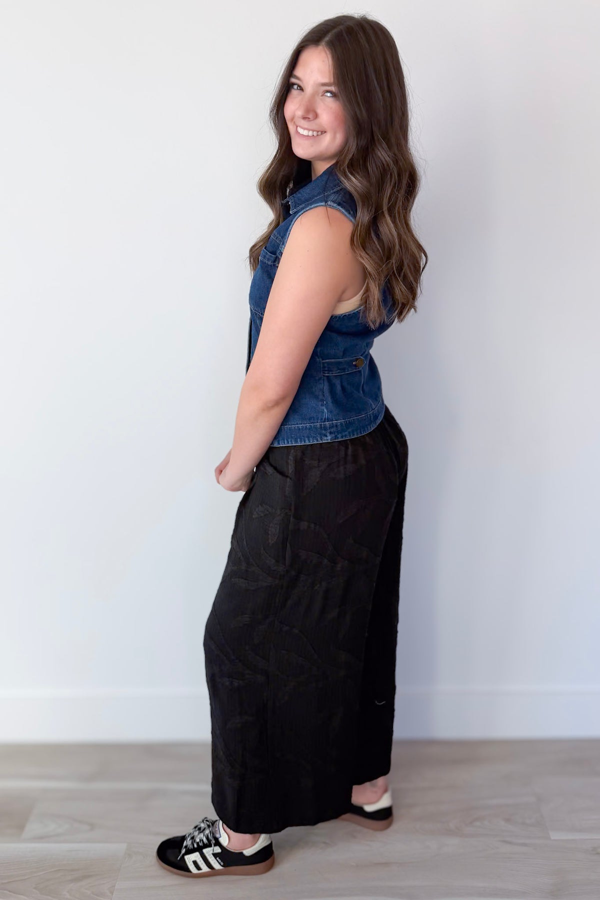 • Sleeveless denim vest