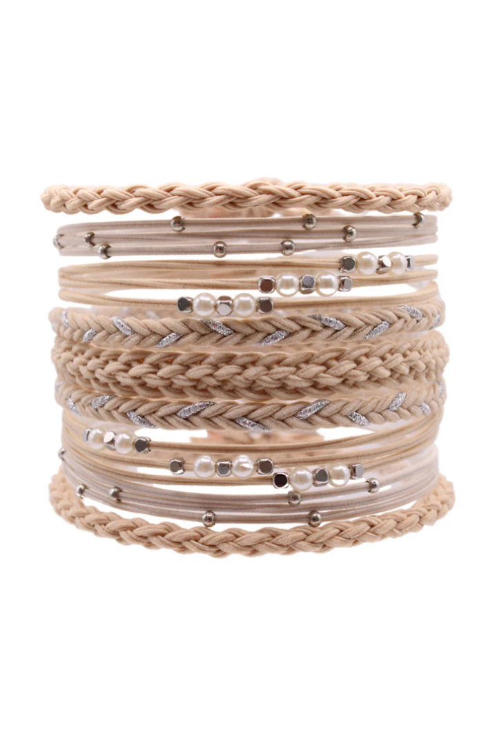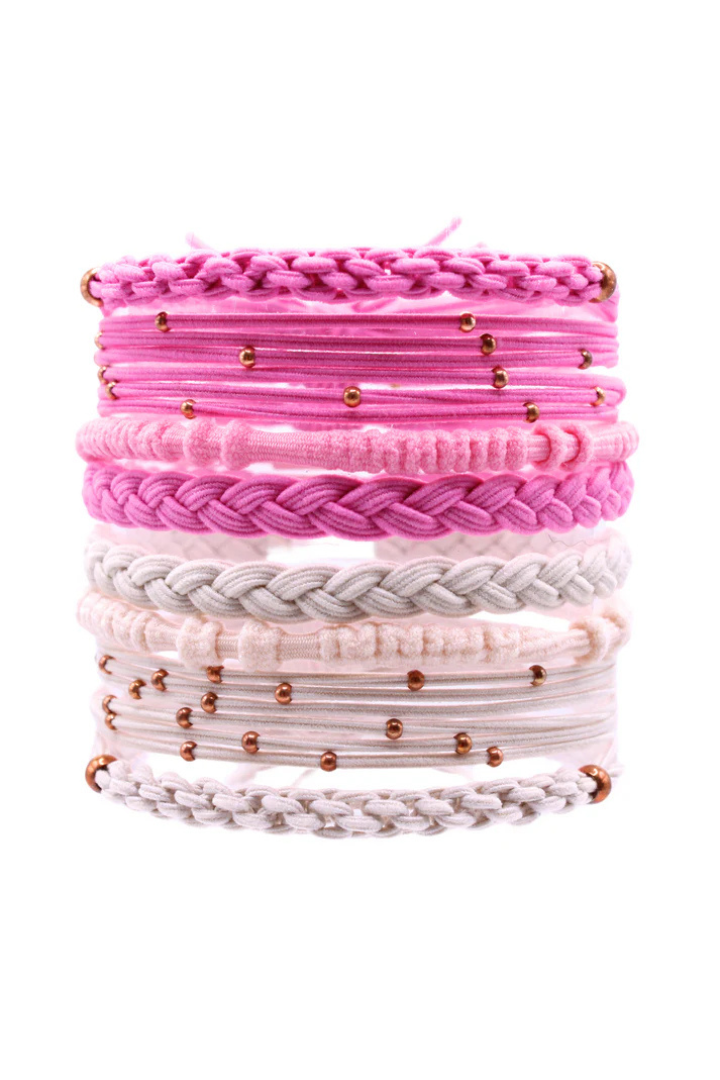 Effortlessly chic and endlessly practical, these Gypsea Bands hair tie bracelets are designed to look just as good on your wrist as they do in your hair. Each set blends soft textures, braided details, and subtle metallic accents for that laid-back, beachy vibe Gypsea Bands is known for.