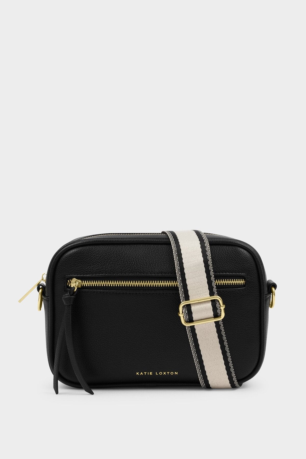 Chic, compact, and effortlessly versatile, this crossbody bag is designed to keep up with your everyday style. Crafted from smooth black vegan leather and finished with luxe gold-tone hardware, it features interchangeable straps to suit your mood.