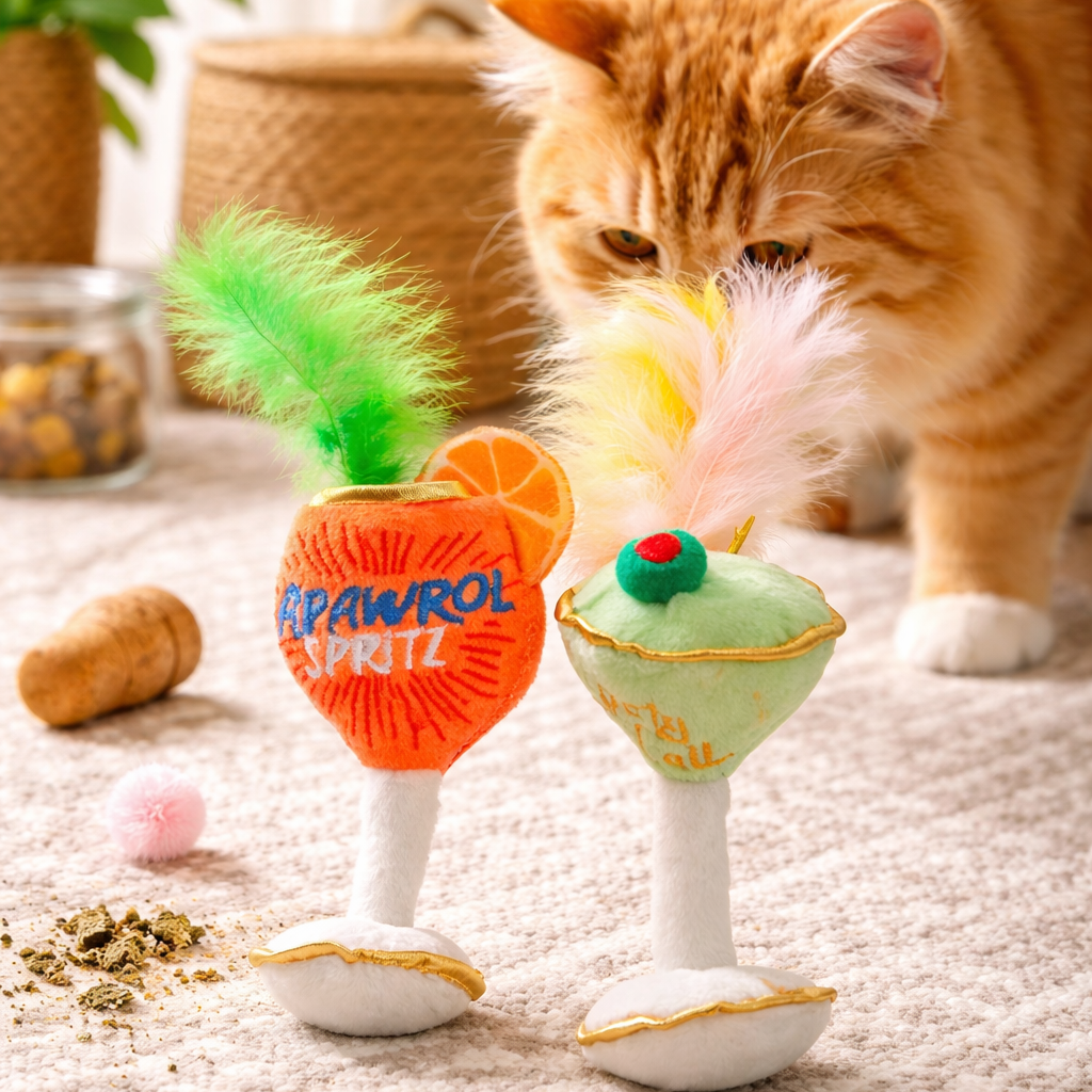 Shake up your cat's playtime routine with Kitty Cocktails! This set of two organic catnip-infused toys brings a touch of mixology to your feline's leisure, keeping them entertained and stylish. Cheers to happy cats!