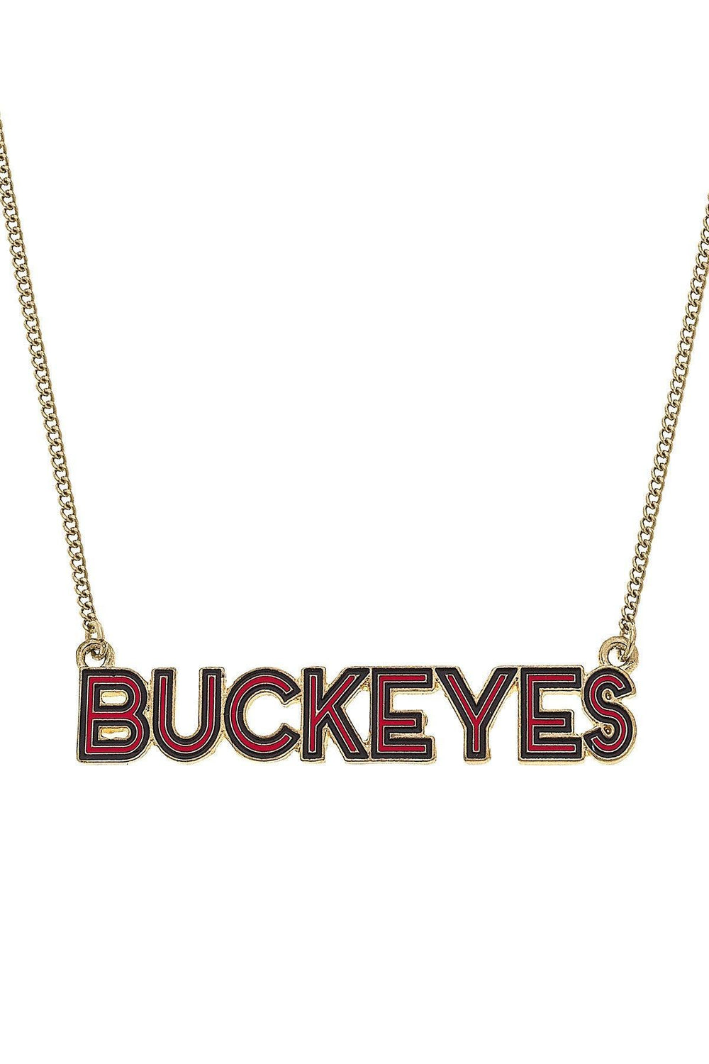 Show your team spirit with this fun Ohio State Buckeyes Outline Enamel Necklace in Scarlet/Black! Perfect for game day or any day, the "Buckeyes" design adds a playful touch to your outfit. Represent your team in style!