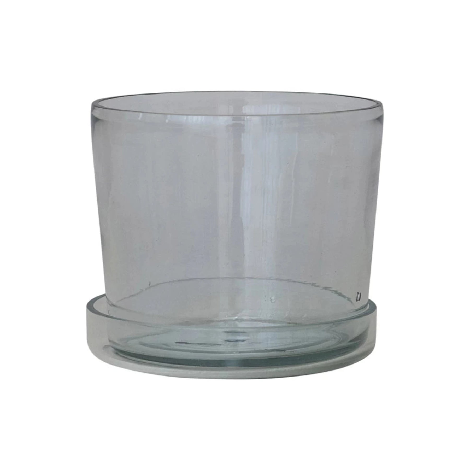 Bring modern simplicity and sustainable style to your plant collection with this hand-blown recycled glass planter. Designed with a built-in drainage hole and matching glass saucer, it’s perfect for keeping your favorite houseplants healthy while adding a clean, airy look to shelves, windowsills, or tabletops. Each planter is uniquely crafted with subtle variations that make every piece one of a kind.