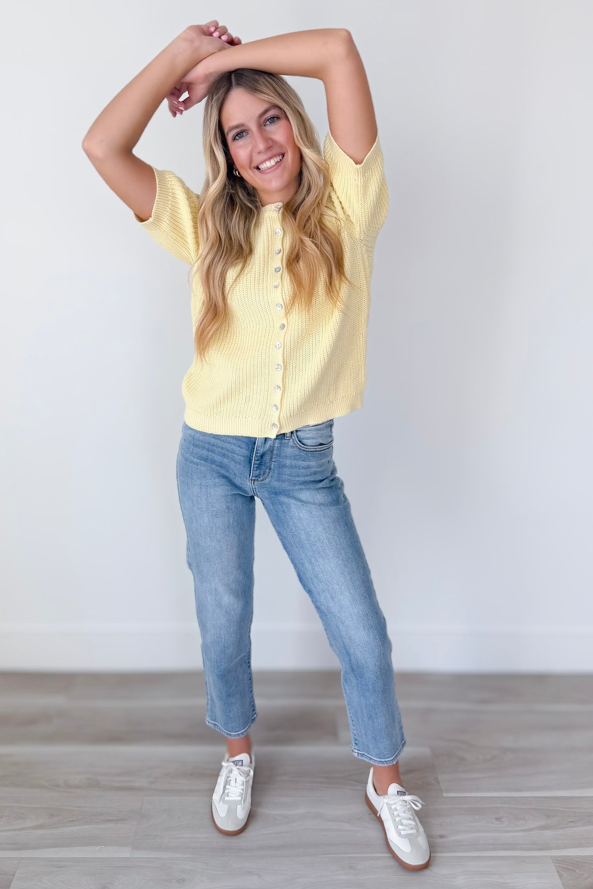 • Soft yellow knit cardigan top