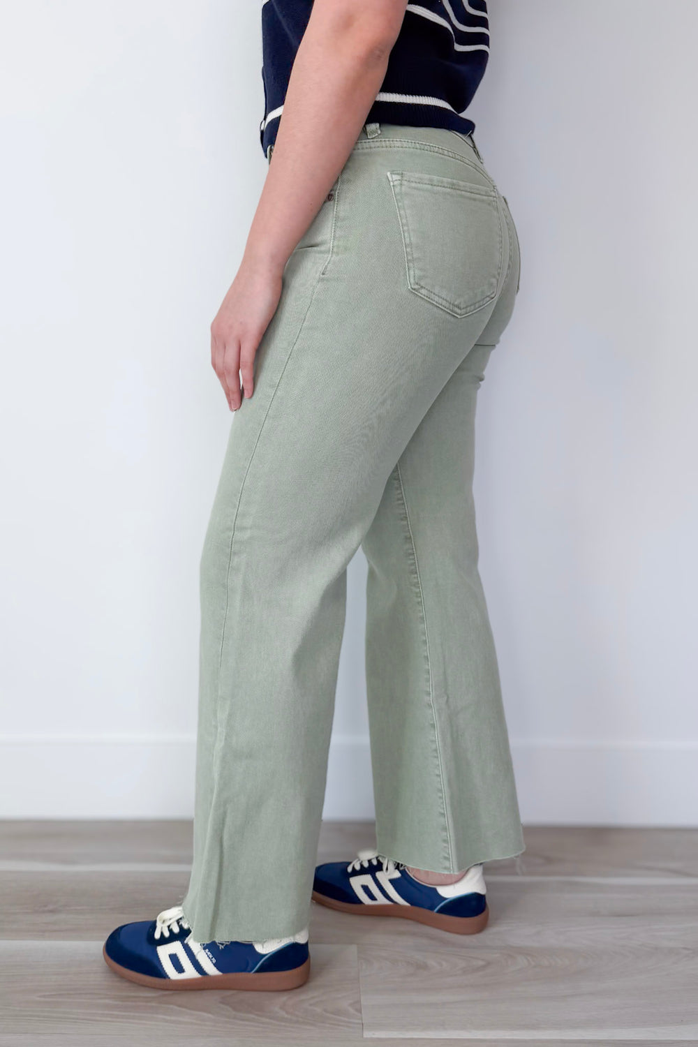 • Sage green straight leg pants