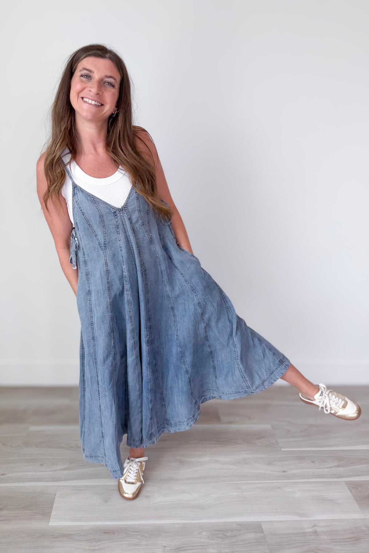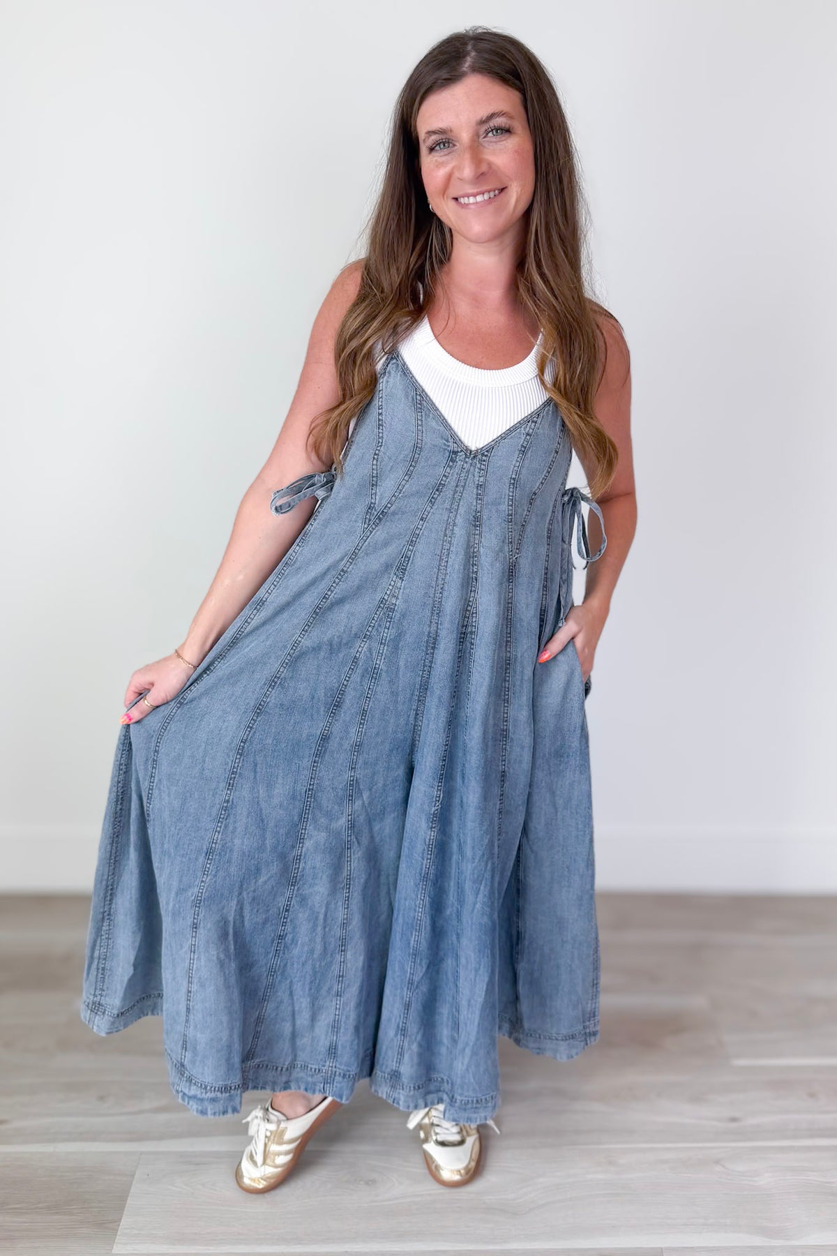 • Washed Denim Wide Leg Jumpsuit