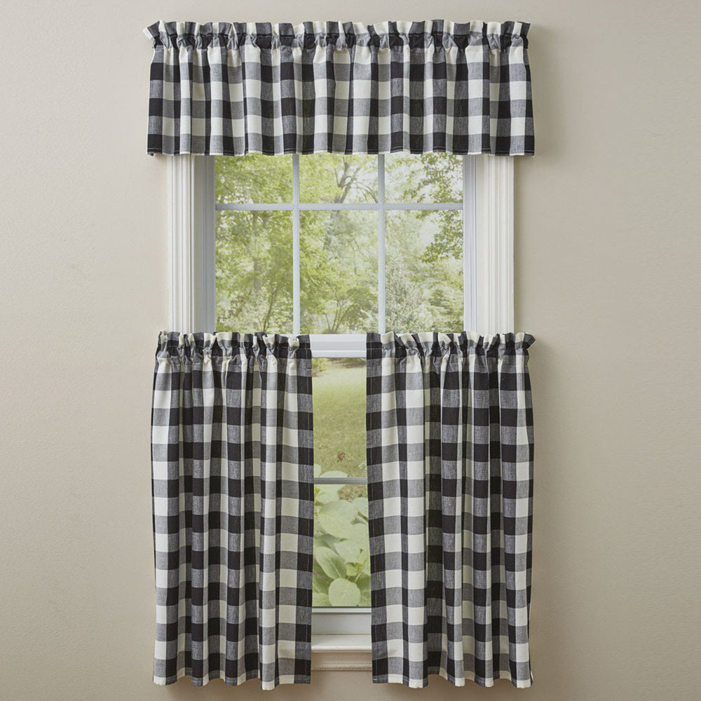 Dress your kitchen window with this farmhouse valance featuring a classic plaid design. This valance is perfect for dressing up the uppermost part of your window while also concealing the drapery hardware. The rod allows for easy slide through installation, making the process an overall breeze. Complete the farmhouse look by layering the coordinating tier pairs to create a warm and welcoming atmosphere.
